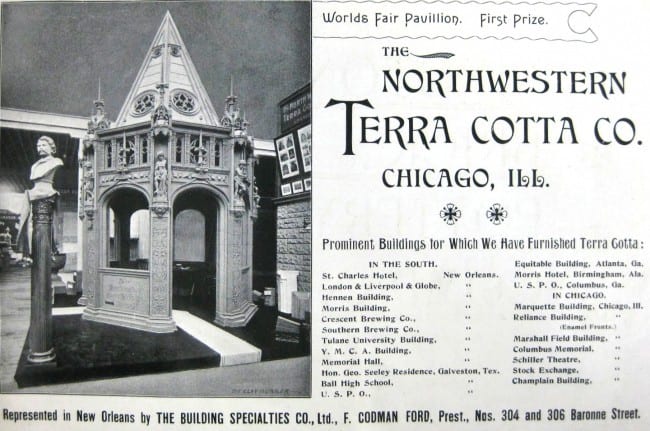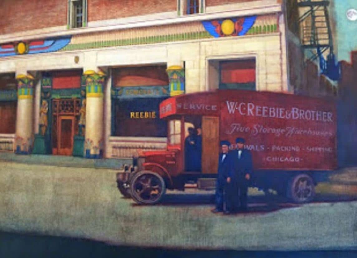 the exterior glazed terra cotta ornament was crafted by sculptor/designer fritz albert, in collaboration with architect george kingsley. albert was supervisor and chief sculptor for the northwestern terra cotta company, and during his career would oversee the modeling of terra cotta for the wrigley, civic opera, merchandise mart, and the carbide and carbon buildings. george kingsley designed a number of storage buildings in chicago in various revival styles, though reebie is by far the most prominent.