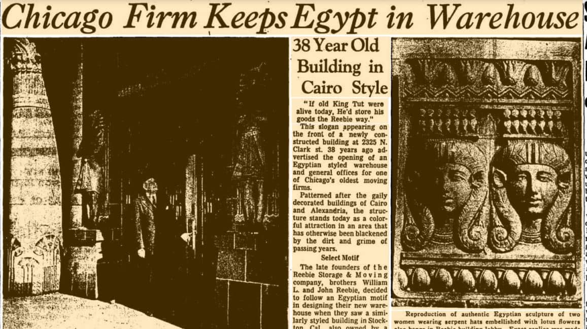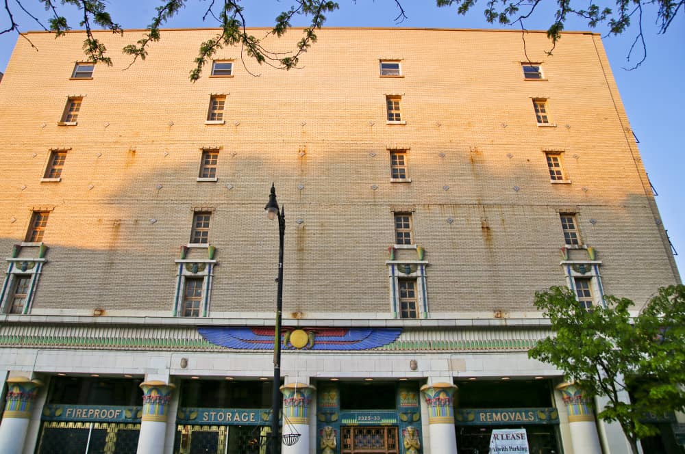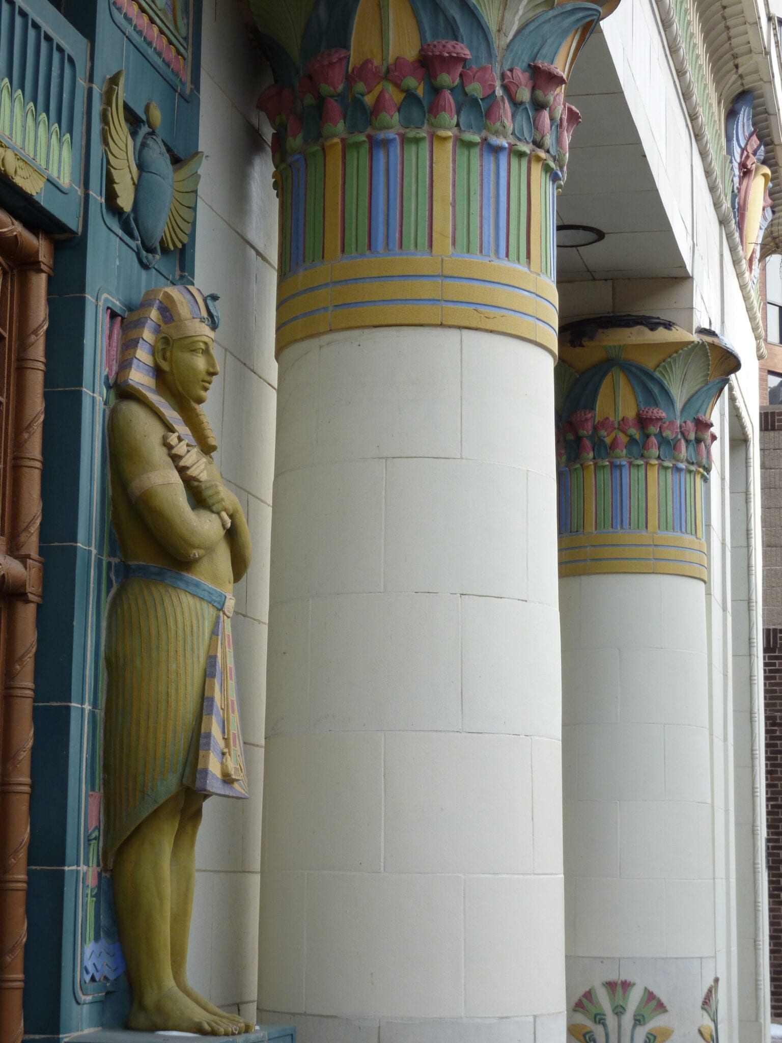 the “fireproof” reebie warehouse was first built in 1922, less than a year after the discovery of tutankhamen’s tomb. in the wake of this and several other archaeological discoveries, there arose a strong wave of interest in egyptology. though egyptian inspired architecture had arrived to america in the early 19th century, it wasn’t until the 1920’s that public fascination permeated arts and crafts fields as well as architecture, with buildings and decorative objects utilizing symbolism of the ancient civilization. art deco was greatly influenced by this current too, and in particular, over 100 theaters were built and decorated in the egyptian revival style.