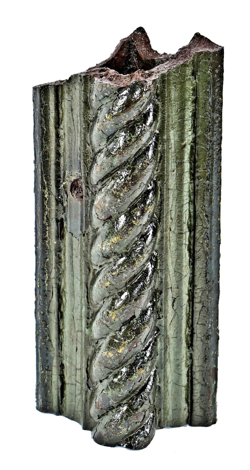 on occasion urban remains ventures to acquire architectural artifacts from outside chicago, and this week brought a fragment from a mid-nineteenth century building in milwaukee that is undergoing redevelopment. the artifact is an original section of allover crazed painted cast iron entryway load-baring column with an exceptional rope motif indicative of 1860’s and early 1870’s architectural design.