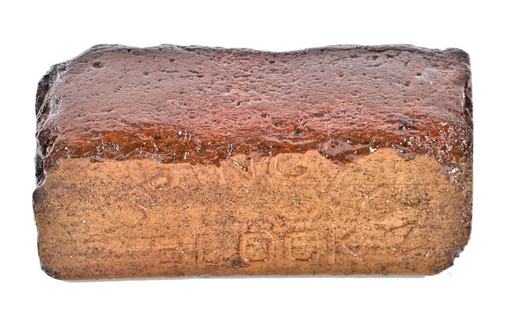 i collected several “pavers,” comprised of both brick and granite (the former added after some of the earliest buildings on the factory “campus” were demolished and their basements filled in) because the haymarket riots broke out behind the crane factory in 1886 and i like the fact that pavers were required on the property to support the heavily weighted-down horse or oxen-drawn wagons filled with cast iron and brass pipe fittings that were being distributed across the city and beyond. unlike other pavers i’ve collected in city streets and alleyways, these bricks are incredibly worn, which makes them all the more visually appealing, and meaningful in light of their role preventing wagon wheels from sinking into the ground.