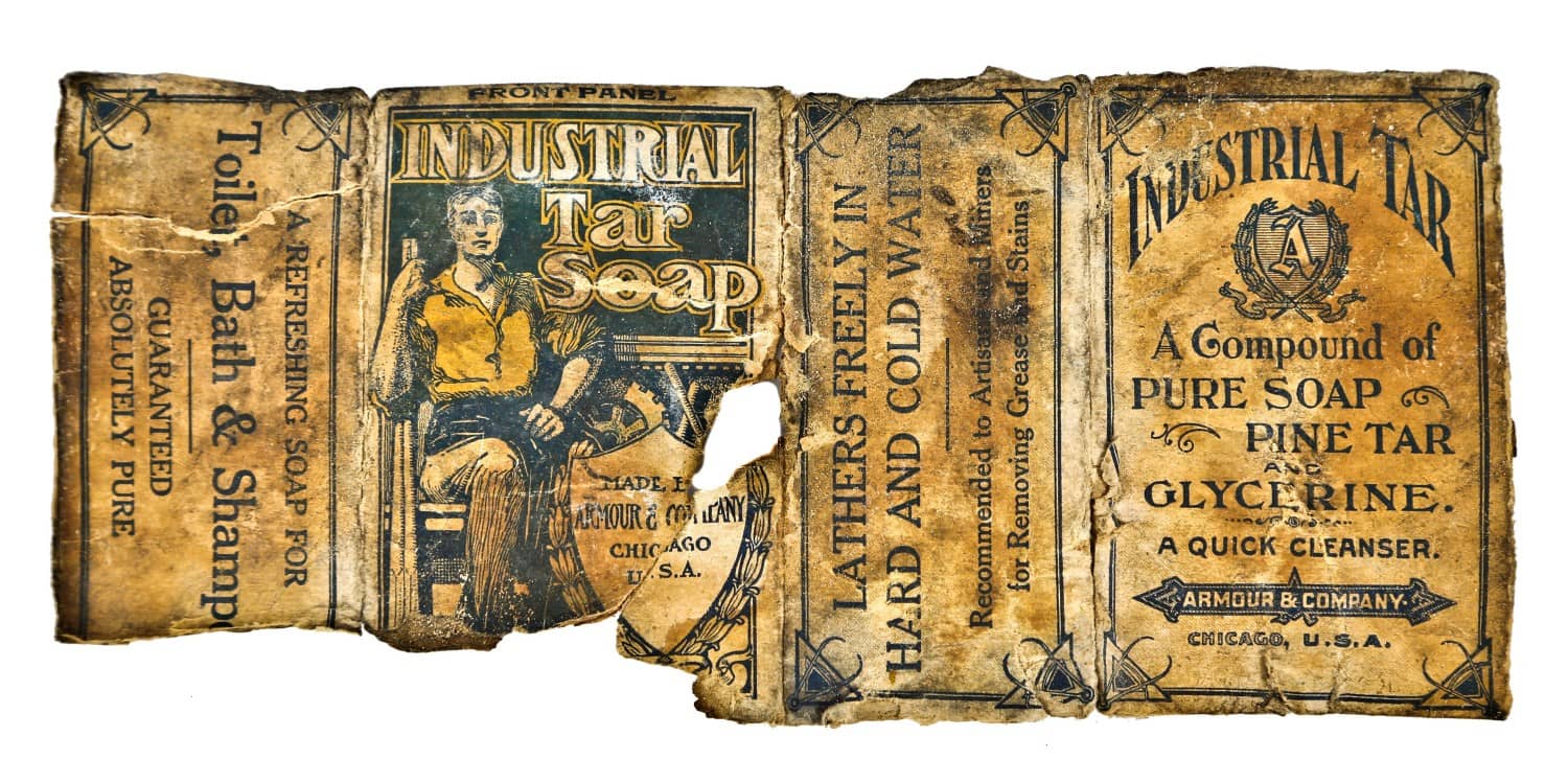 in addition to the invoices, shipping receipts, and several hand-written records, i discovered newspapers, catalogs, product samples and a largely intact, “industrial soap box” with graphic depicting a sitting machine operator. i find this to be especially interesting, as it provides insight into what sanitary products were used by crane employees in the factory’s lavatories during the late 19th or early 20th century.