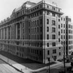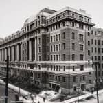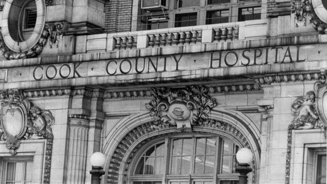 a picture from the early 1950’s after the cook county hospital’s first facade cleaning shows the dramatic difference restoration efforts could make for the building. as of now, much of the terra cotta is held together by metal straps, paint is peeling and the facade is ailing. nevertheless, the building is structurally sound, waiting to be returned to its original state.