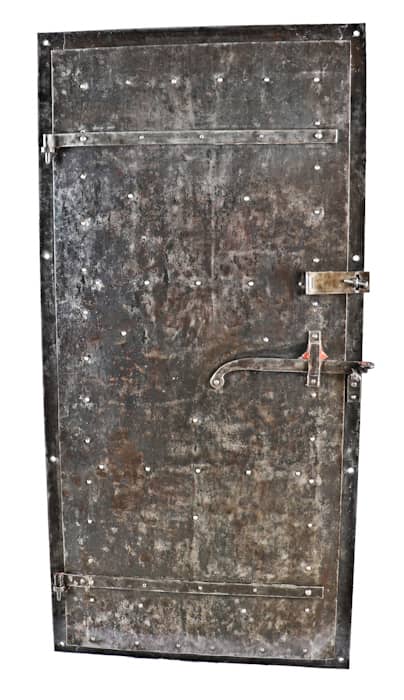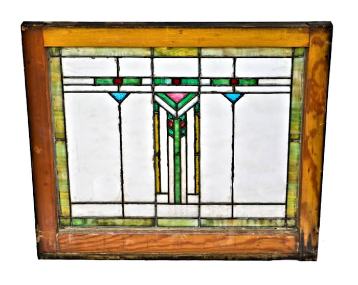 31 May factory furniture, craftsman style art glass windows, dug chicago bottles, and a crane plant vault door