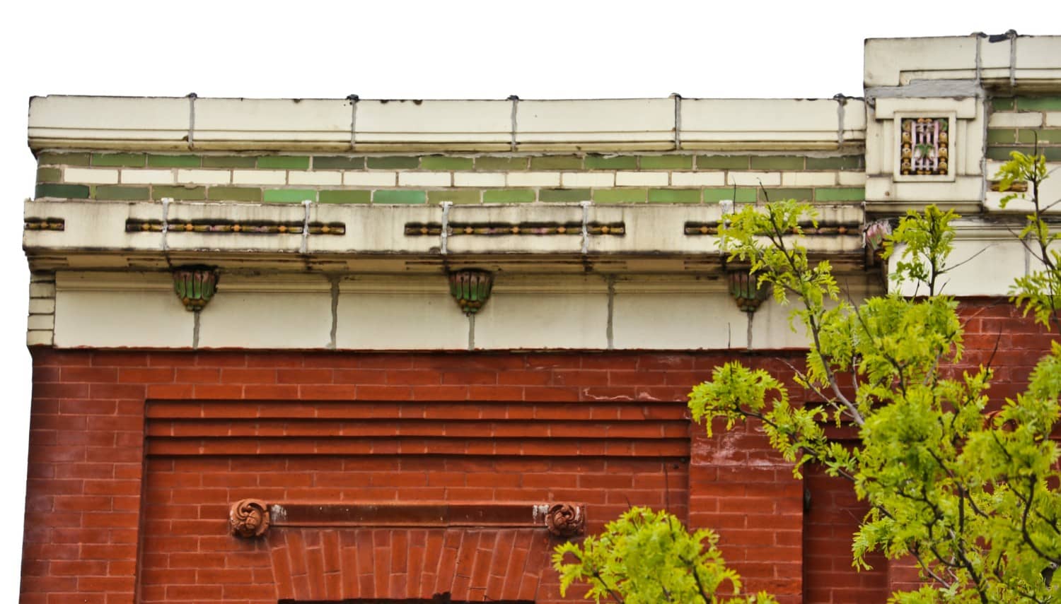 09 Jun 19th century building facade “remuddled” with 1920’s art deco polychromatic terra cotta cornice