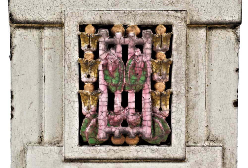 a newly added cornice, consisting of exceptional, brightly colored polychromatic terra cotta ornament was anchored as an assemblage against the roofline, which likely contained a heavily ornamented cornice comprised of stamped or pressed metal. although the art deco style terra cotta and its color scheme is impressive in its own right, it terribly disrupts the original identity of this solidly constructed romanesque building. i’m still mulling over why the building owners at the time chose to have a terra cotta fabricator construct and assemble a colorful cornice with stylistic elements that would hurtle the building into an identity crisis. perhaps i will never know.