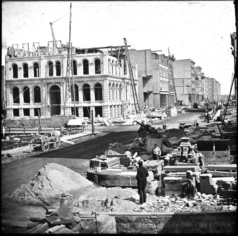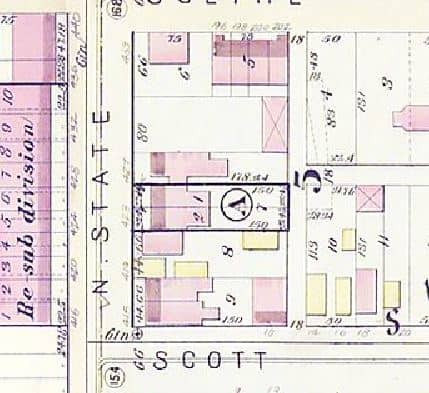 the house at 1241 state street was once 421 state street and seems to have a lengthy history of occupants who were grocers, or associated with the trade. the site’s earliest recorded occupant (before the current post-fire house was constructed) was in the mid-1850’s, listing michael reich, a grocer. in 1870, the address is recorded as the “california house,” which spanned nos. 419-421 state street, and was kept by frederick ranoban. following the fire, the occupant seems to have been richard maurice birdsall, another grocer whose office was headquartered at this address. birdsall arrived to chicago in 1877, and eventually became vice president of the western cold storage company. birdsall is further credited as being the originator of the railroad refrigerator car, and established the first cold storage plant in the city in 1882.