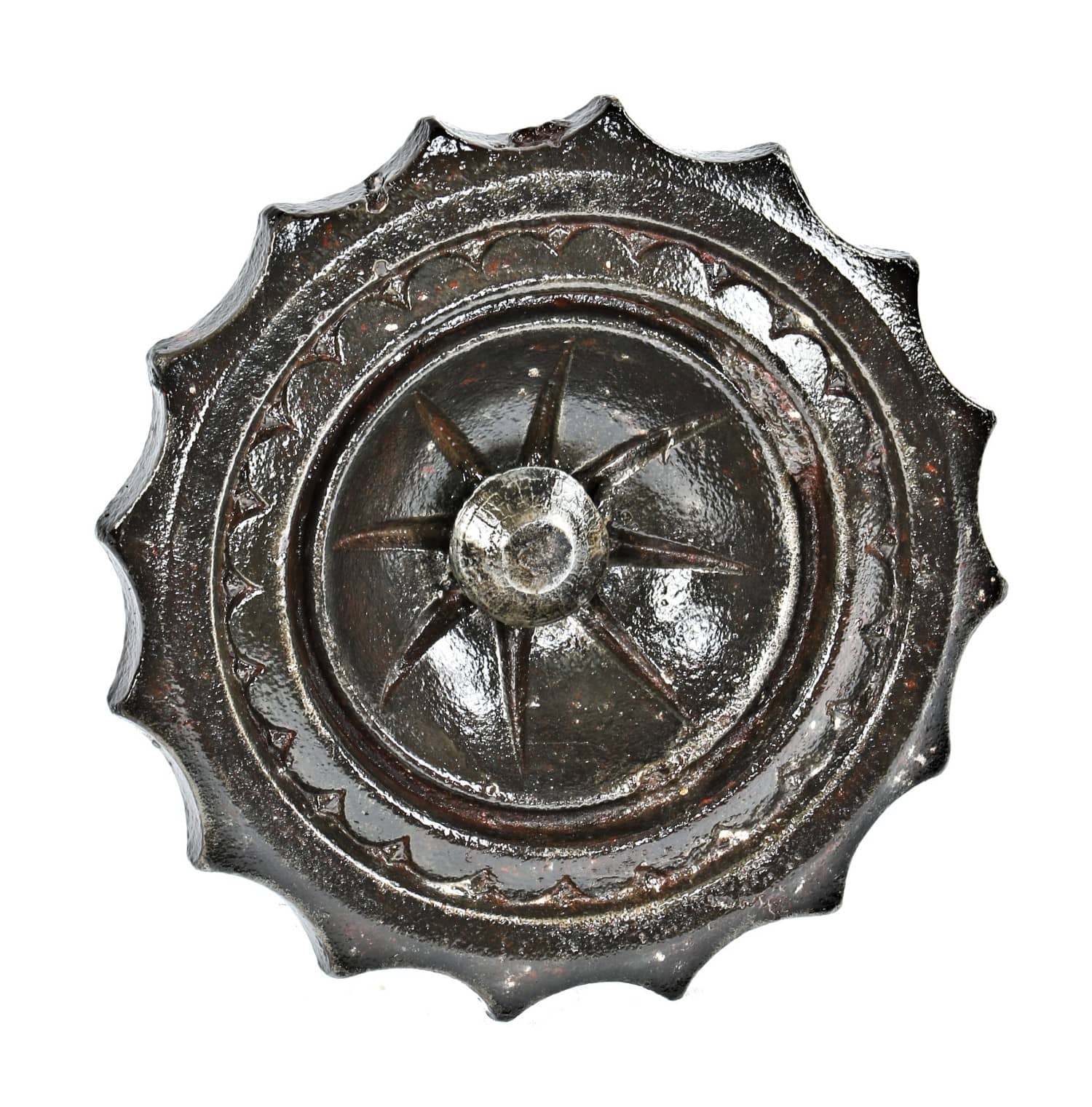 the exact fabricator continues to elude me, even as i sit here writing and conducting research. i have carefully poured over my iron foundry period catalogs (e.g., union and dearborn), but have failed to find a rosette offered with an identical design. several share similar characteristics and profile, but the arrangement of the design motifs have not yet turned up in those publications offered by chicago-based 19th century foundries.
