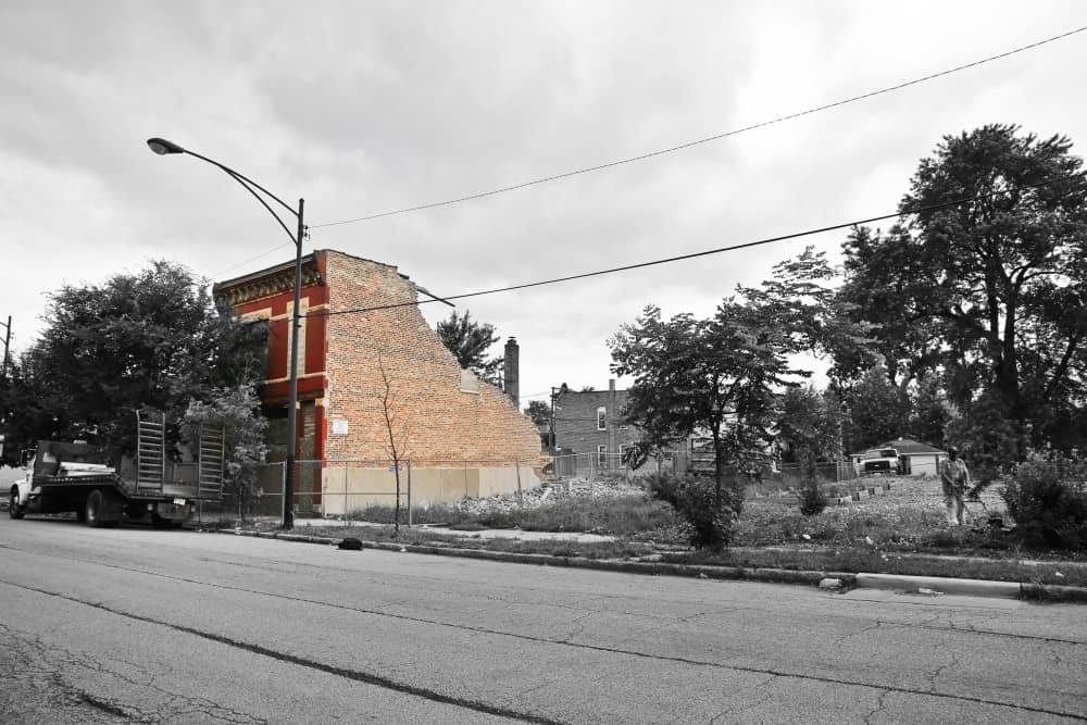 still, it was adorned with its decorative tin cornice and exposed load-bearing i-beam. at some point the building’s expansive storefront with oversized plate glass display windows would have showcased the proprietor’s goods, and allowed abundant natural light into the interior. it was clear by surveying the surrounding area, however, that the building didn’t stand a chance; it was one of only a few surviving structures from that era left standing on the entire city block. i was really struggling to imagine a context in which this building had a more meaningful identity, and a narrative that would justify its existence, after the surrounding neighborhood had been so thoroughly altered, its history obliterated.
