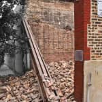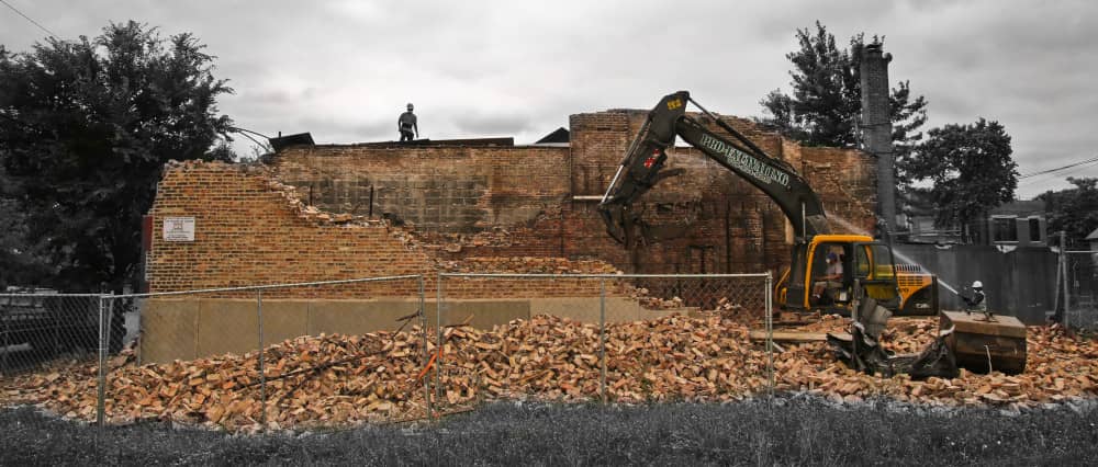 i was pleased to document this structure, which clearly represented a gleaming symbol of resilience, a champion against time, and short-sighted decisions. aside from that quickly fleeting feeling, i focused on what, if anything, to salvage from a structure that had been severely ravaged, to the point of disfigurement. since i remain interested in the integration of cast iron store “fronts” used to open up 19th century commercial structures to the steady flow of onlookers on the streets (no two are alike, despite the ornamental “stock patterns” utilized time and again), i hoped to save the entire “system,” or at the very least, the multitude of rosettes protruding from the horizontal beam.