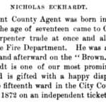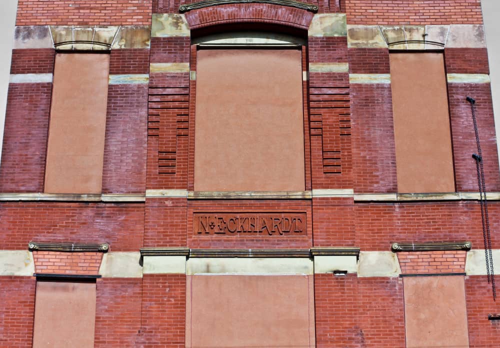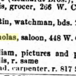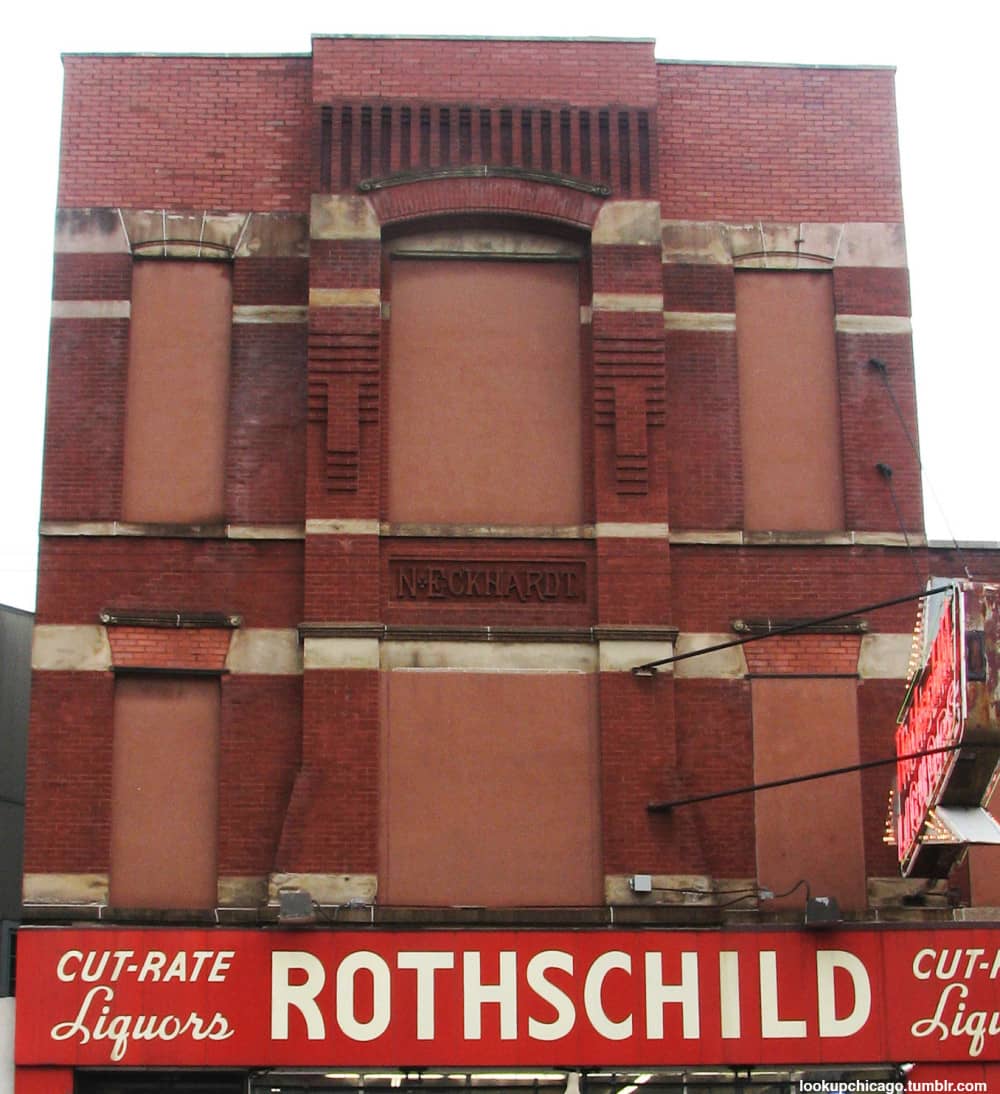 on the facade of this former dive bar, decorative brickwork appears centrally with the name, “n. eckhardt,” testament to the original occupant and builder. nicholas eckhardt was a german-born immigrant who arrived to chicago in 1854. according to city directories, he held a number of different jobs, being listed as a fireman, pipeman, and county agent in addition to being a saloon owner. in 1867, the building in question was constructed at what was then 448 w. chicago avenue (renumbered to 1532 w. chicago after 1909) to house eckhardt’s family and run his business. eckhardt died in 1901, and his son nicholas jr. ran the saloon until 1936.
