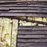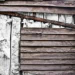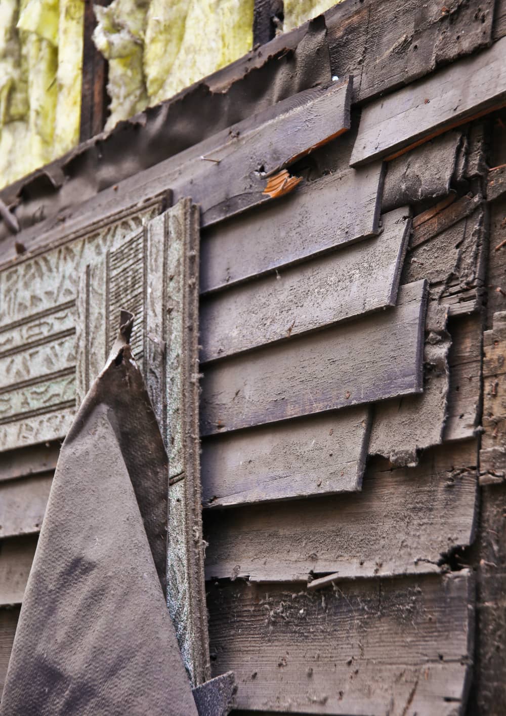 though the solidly hewn beams suggest its configuration as a heavy frame or post and beam construction, the cottage still represents a hybrid or combination frame, as it utilized studs (up-down sawn, 1.5 x 3 inches), akin to a balloon frame. when the south wall was fully exposed during demolition of the neighboring house (i.e., 455) the day before, i discovered an unusual cross-section in clapboard installation, that had been effectively hidden for decades, spanning nearly 170 years. the first and most striking layer consisted of siding comprised of long, continuous boards, much wider than is common and appearing to have pit saw markings.