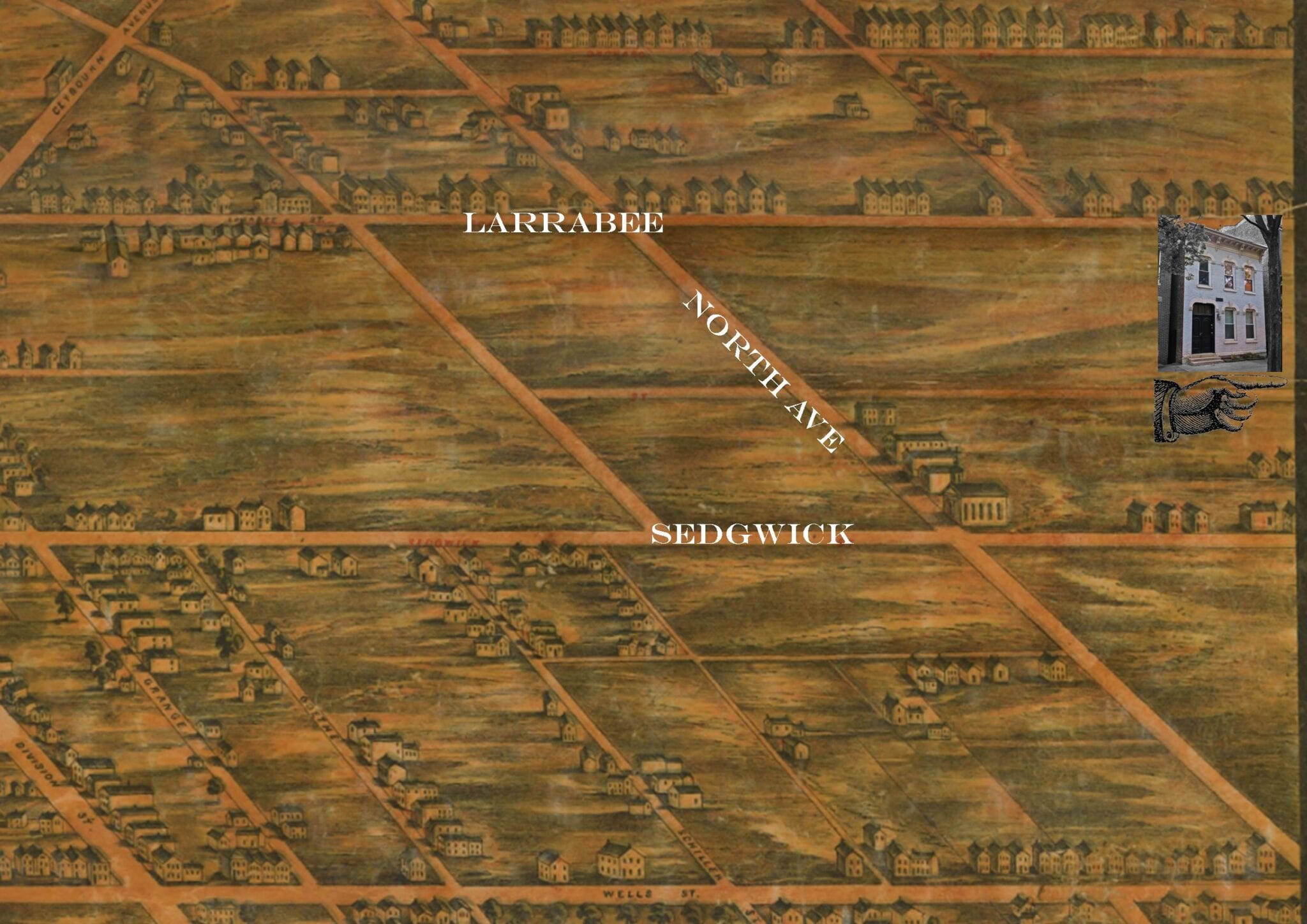 1857 chicago map featuring a bird’s eye view of the neighborhood where the house of interest was built shortly after the great chicago fire of 1871. development in this area of the city was sparse during this time – populated with single and two-story wood framed workers cottages.