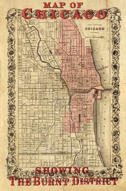 consulting a map of the burnt district shows that 315 hurlbut sat within range of the affected area, though near the periphery. it remains unclear whether the house actually survived the conflagration or was built in the immediate aftermath. a plausible scenario is that a wood frame house on the lot survived and was then pushed to the back of the lot and used as a coach house (a wood building is shown in the rear on the 1886 sanborn insurance map). the existing structure would likely have been built on the front of the lot to comply with post-fire codes that required use of brick.