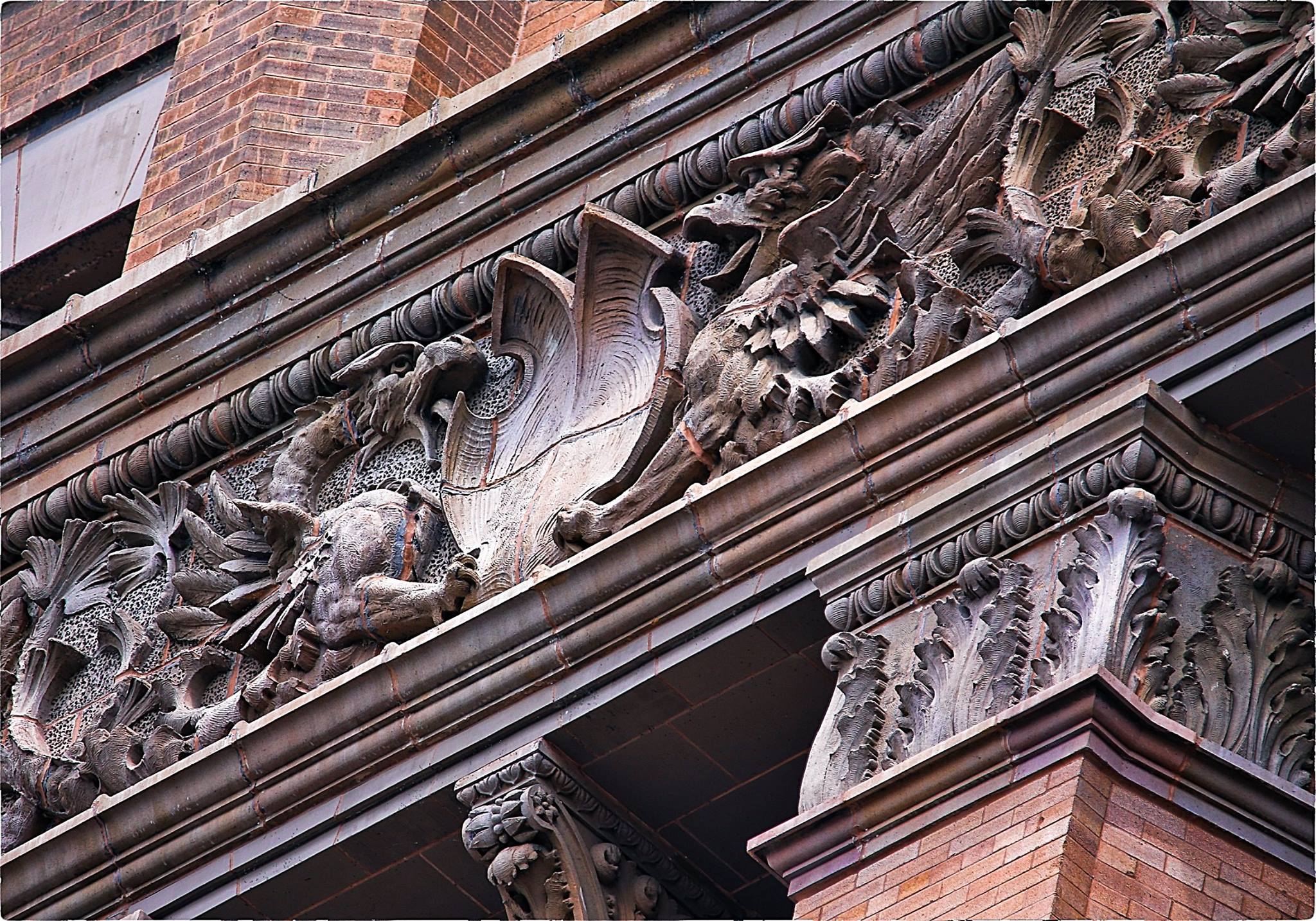 restored ornamental figural terra cotta frieze, milwaukee city hall building (1895), milwaukee, wisc. henry c. koch, architect.