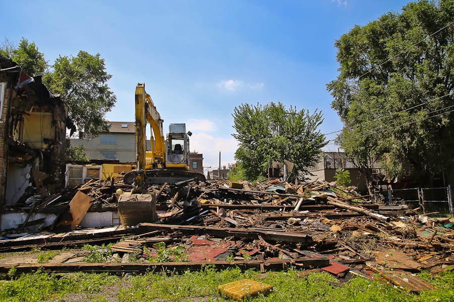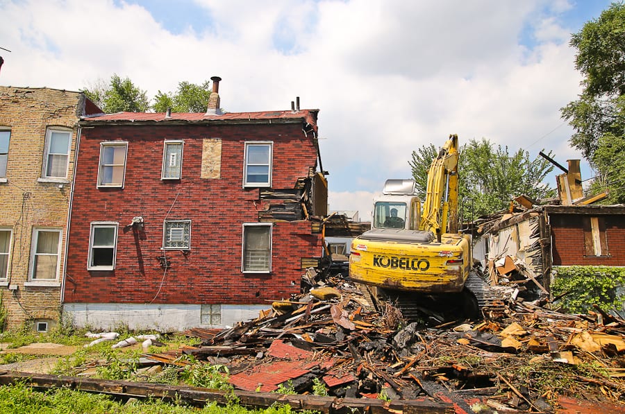 before the combined structures were reduced to rubble, time and neglect left them in a state of disrepair, earning a “condemned” notice from the city. in addition, the easily overlooked architecture with no visible header or brickwork, and/or decorative elements along the facade, coupled with empty lots on either side made the residence an easy target for demolition or development. in line with this, research into residents at 1844 w. race street (formerly 38 w. emerson st.) turns up little information pertaining to detailed history of construction and/or the occupants that lived there over the years. the only news-worthy moment in its history seems to have been during the late 1980’s, when a known burglar resided on the 2nd floor, and was soon after found murdered in an associate’s near west side apartment.