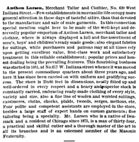 in fact, urban remains’ parking lot in the late 1870’s (at 621 w. indiana) was occupied by carpenters charles and julius reese. they in turn neighbored a porter named henry dodge, and a coffee, tea, and spice retailer named w.f. anderson. during this same era, the corner building on grand and wolcott was a merchant tailor and clothier’s emporium, run by dutch immigrant and masonic fraternity member, anthon larsen.