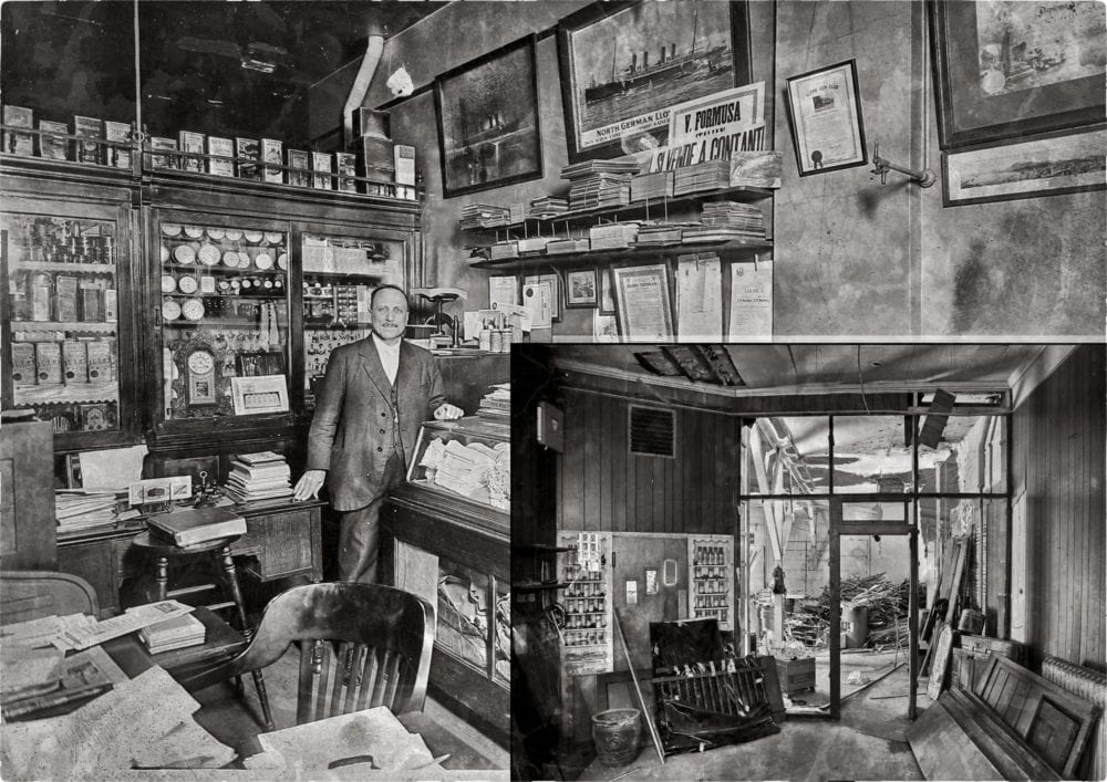 the discovery of a depression-era time capsule which preserved a great deal of an italian family’s century-long occupancy at 710 w. grand avenue, led to just this sort of afterlife for the story of the building. when the formusa family (who just last year moved their operations to des plaines), caught wind of the salvage, they naturally got in touch to reclaim some of their family’s belongings. surprisingly they had already rescued much of what existed on the “time capsule” floor, but they still had somehow missed these heirloom-filled trunks, which were so incredible to stumble across.