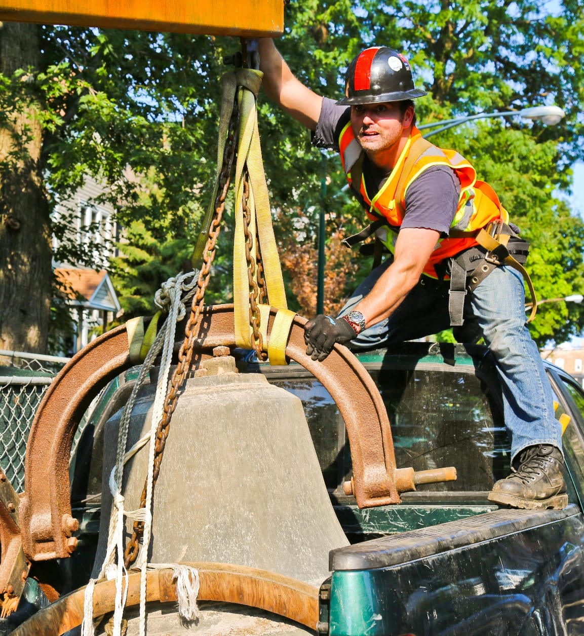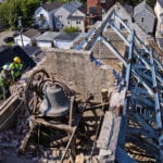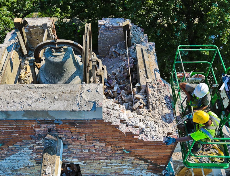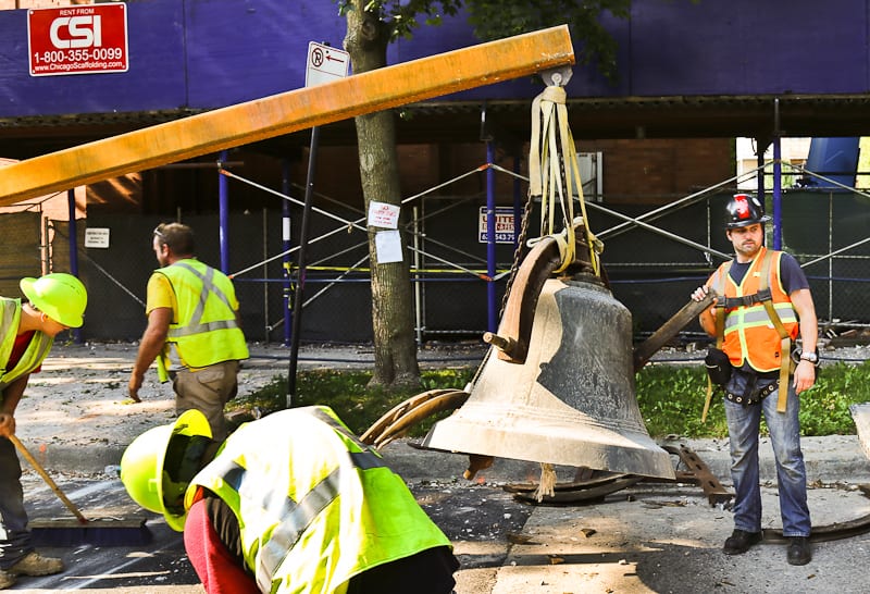 29 Aug st. john’s 1910 bronze bell is removed from steeple as church undergoes its continued deconstruction