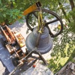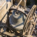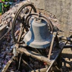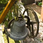 the church bell was removed as a “system,” with a-frames, yoke, clapper and single sheave wheel intact.