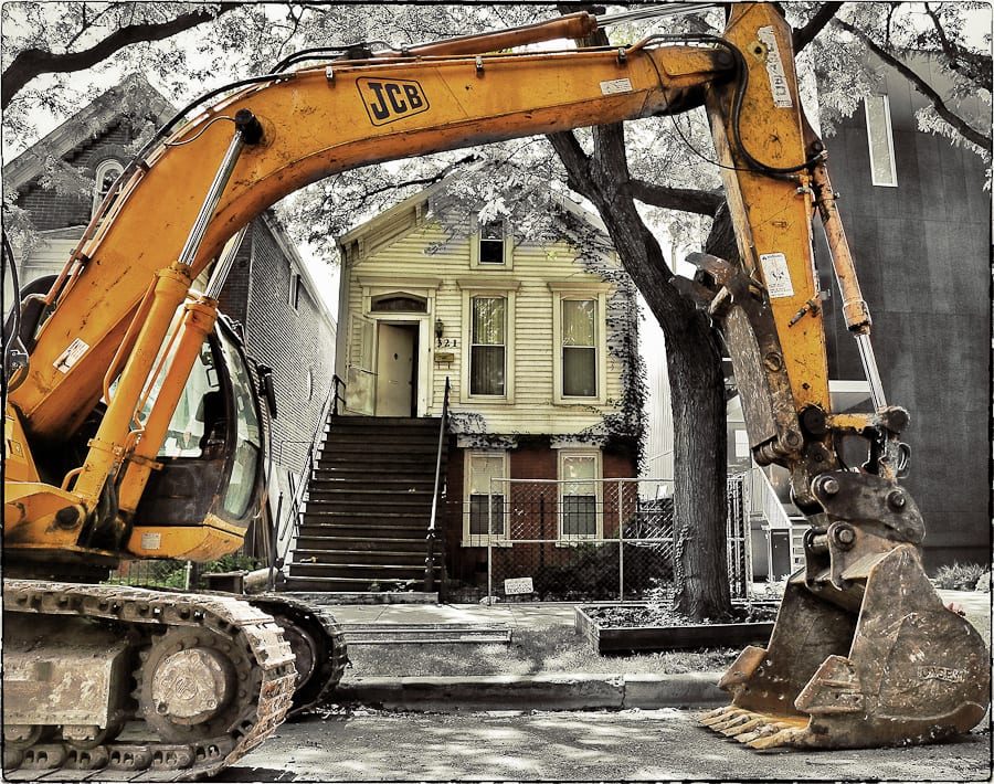 seven hours in and i was standing there with a friend, who would deconstruct the houses before the machine’s treads began to rumble. we were caked in dirt and sweat. my body throbbed from inflammation everywhere, including a twisted ankle that likely would have been broken if i weren’t wearing my steel toe boots.