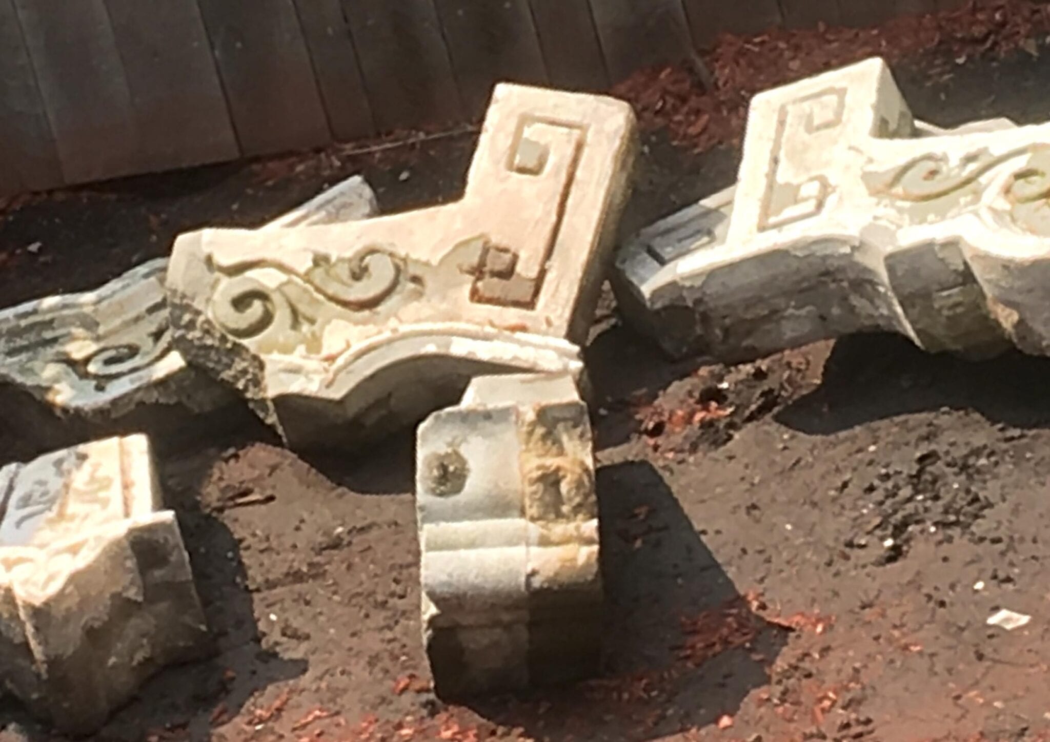 people can do whatever the hell they want… it’s just sad that ornament which might be appreciated in a historical context have been sitting in a backyard for ten years, scattered aimlessly around nothing. what’s the difference between that and a landfill? the house of course, built on a double lot, is the most hideous creature to rise from the ground. so at the very least, the fragments live on, giving a silent middle finger to the monstrosity that replaced the structure they once adorned.