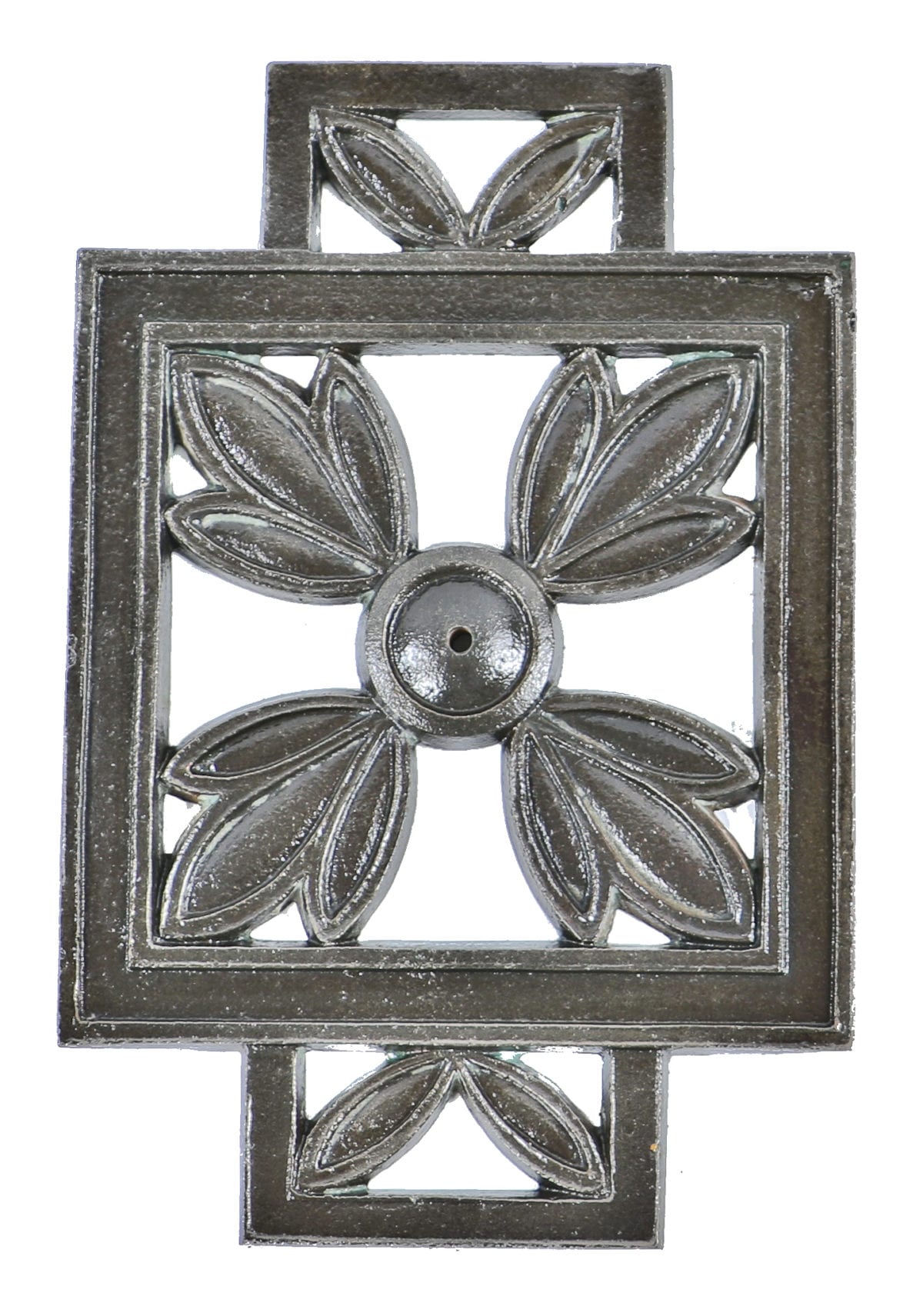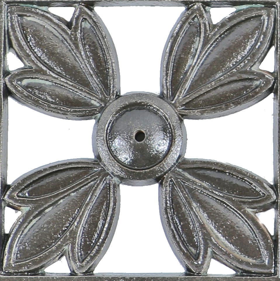 several original single-sided documented brushed and refurbished cast iron staircase panels recently entered the bldg. 51 collection: the exquisite cast iron ornament exhibit symmetrical and restrained floral motif inside overlapping geometric shapes that once adorned the stairs of a historic uptown building whose alteration is intertwined with the upheaval of early 20th century businesses that have shaped the neighborhood.