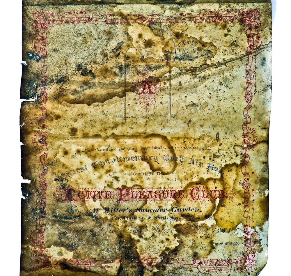 21 Sep early wall paper, mummified rat, and “pleasure club” invite found resting on william schmidt’s post-fire cottage sill plates