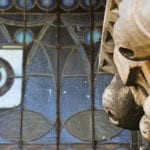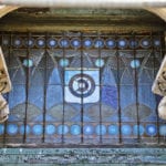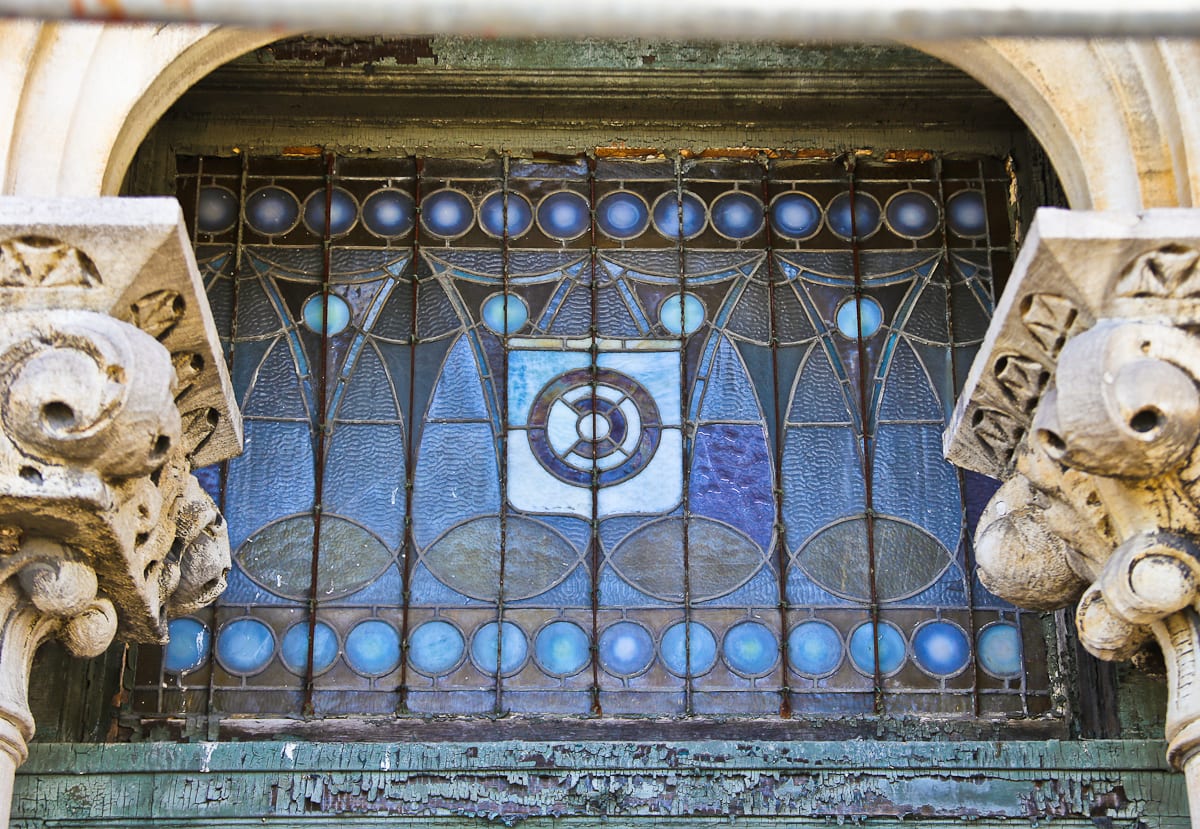 the basement, pediment, columns, pointed arch windows and several other architectural details are executed in blue limestone from quarries in bedford, indiana, which grounds their italian flair in distinctly midwestern materials. in addition to the abundant use of carved indiana limestone and flemish diagonal brickwork, i was drawn to the the exceptional wall of art glass windows – executed by the notable chicago firm healy and millet, which from the interior, invites a rich and vibrant color scheme that floods the “great dining room.”