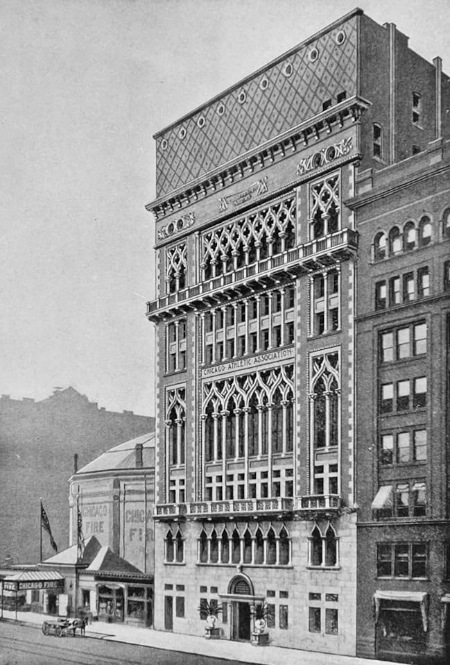 the façade of the chicago athletic association is and has been one of the most iconic along the lakefront since its construction in 1891. one contemporary of cobb’s declared, the 10-story structure “has in some important respects improved upon its models,” namely – the gothic palaces of the venetian renaissance, and in particular the magnificent ca d’oro. the athletic association’s façade embodies an elegant use of structured repetition and ornate decoration, its face on michigan avenue filled with details while decorations remain well-spaced, repeated, and balanced so that the whole structure is in the end neither too complex nor overbearing.