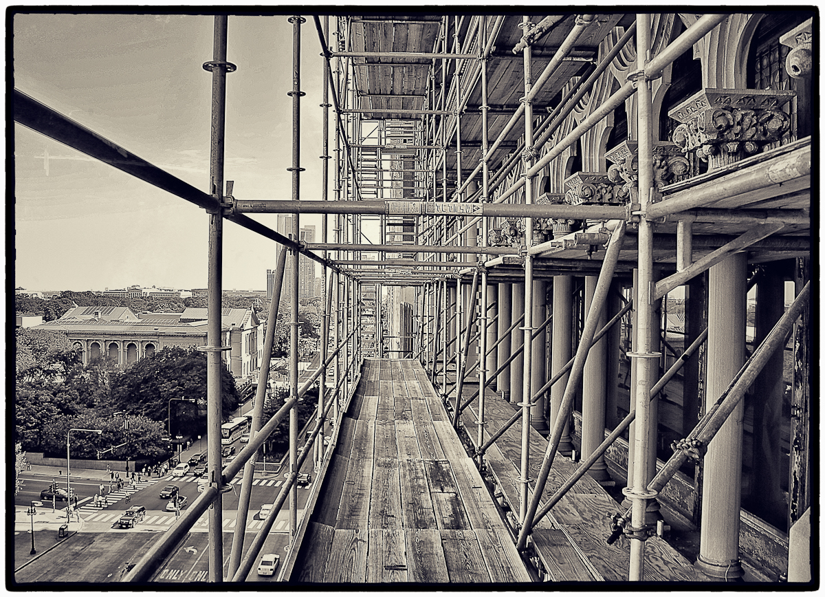 it’s been nearly two years since i got to spend several consecutive afternoons photographing the entire facade of henry ives cobb’s chicago athletic association building. my access was granted during a time when the building was covered from top to bottom in a web of scaffolding, replete with a makeshift staircase and haphazardly placed gang boards to walk along, allowing for full immersion in the facade’s surface detail. with the exception of some short-sighted and irreversible alterations, the incredible facade is mostly original from the time it was first constructed, in 1891.