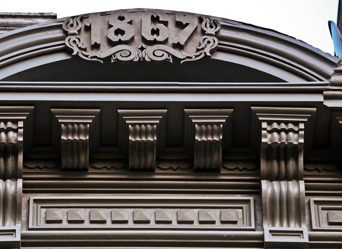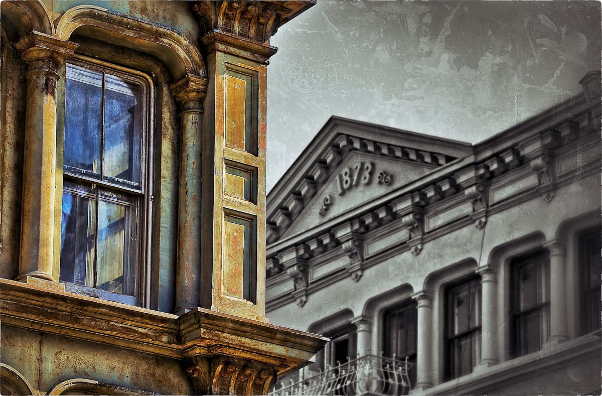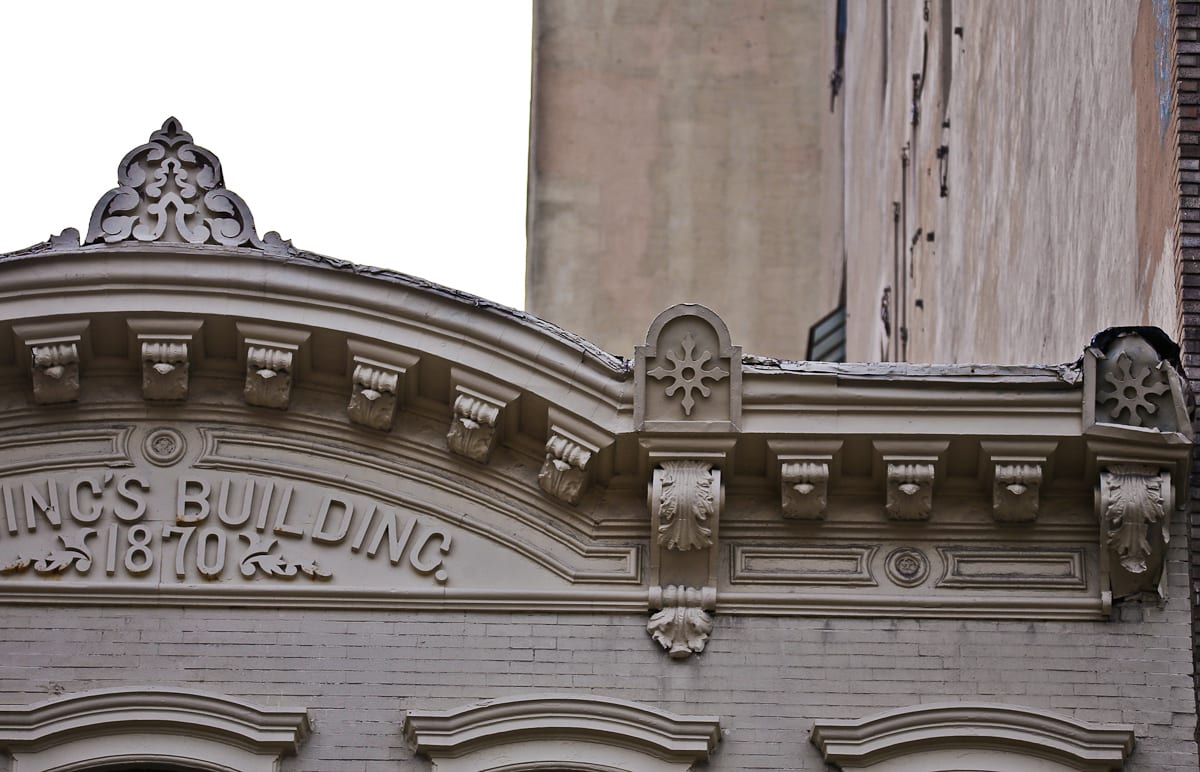 for one thing, the many single-sided iron plaques, address markers and various informational signs allow one to literally read the 19th century souls in these structures. while the district might continue to transform, its buildings will continue to attest to the past that created them, a former era grafted onto each façade by way of foundry stamps on cast iron buildings. names like “lindsay & graff ” or “s.b. ferdon iron works” gesture toward the web of industry that arose around cast iron architecture from the 1850’s-1890’s, and which formed the district’s reputation as the cast-iron capital of the world.