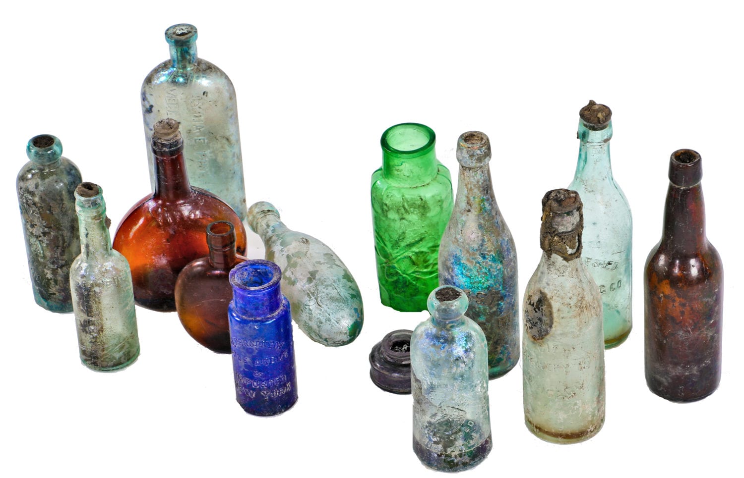 wide range of bottles and objects were recovered from the forgotten chicago landfill. from a late 19th or early 20th century pabst brewing bottle to a heavily embossed capers jar, the wide assortment of artifacts was impressive.