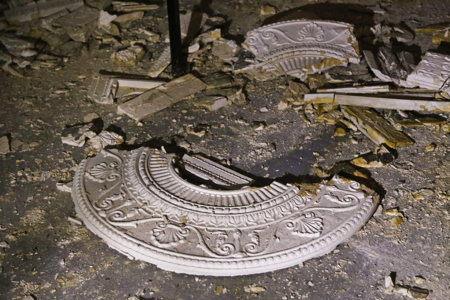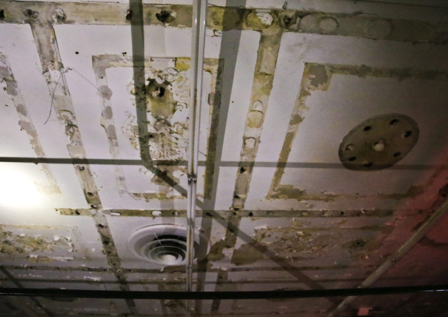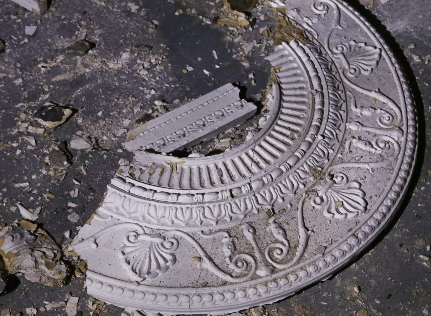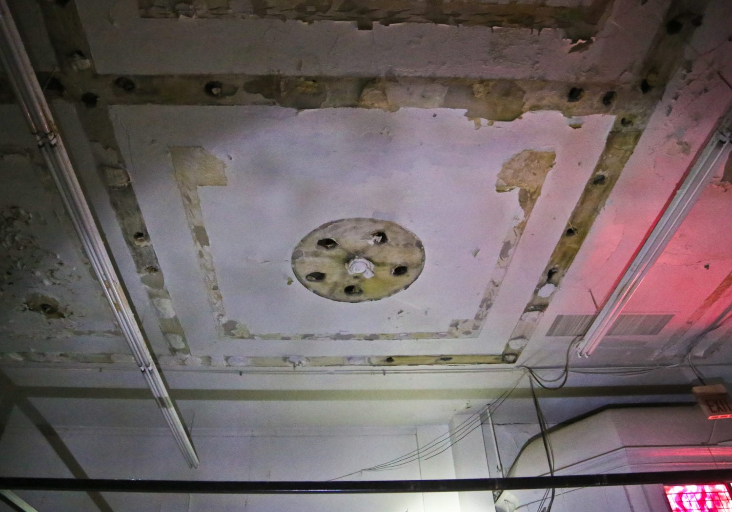 logan square buick showroom ornamental plaster ceiling crashes to floor from neglect and abandonment