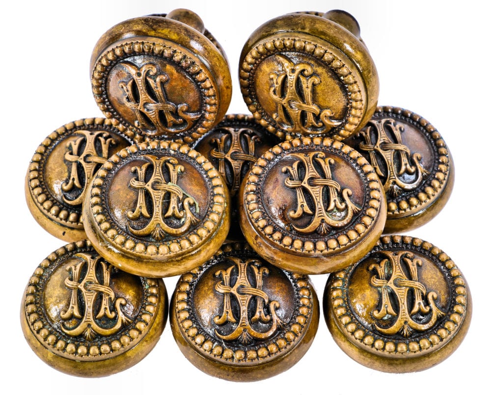 the lexington hotel, built for the chicago world’s fair of 1893, was completed in 1892. clinton j. warren was its architect. the non-extant hotel was outfitted with thousands of cast bronze monogrammed doorknobs mounted on the guest room doors. the ornamental doorknobs contain the hotel’s initials in fanciful, overlapping lettering surrounded by a beaded border. the doorknobs were likely fabricated by the p. & f. corbin company, new britain, ct.