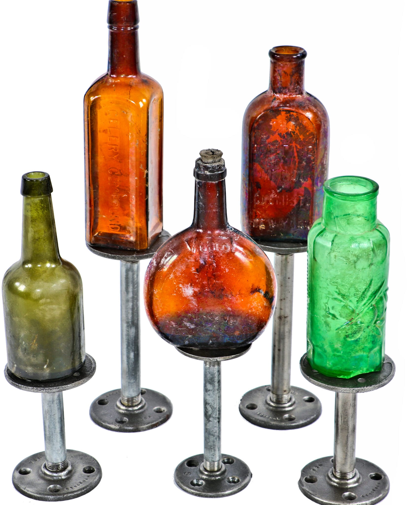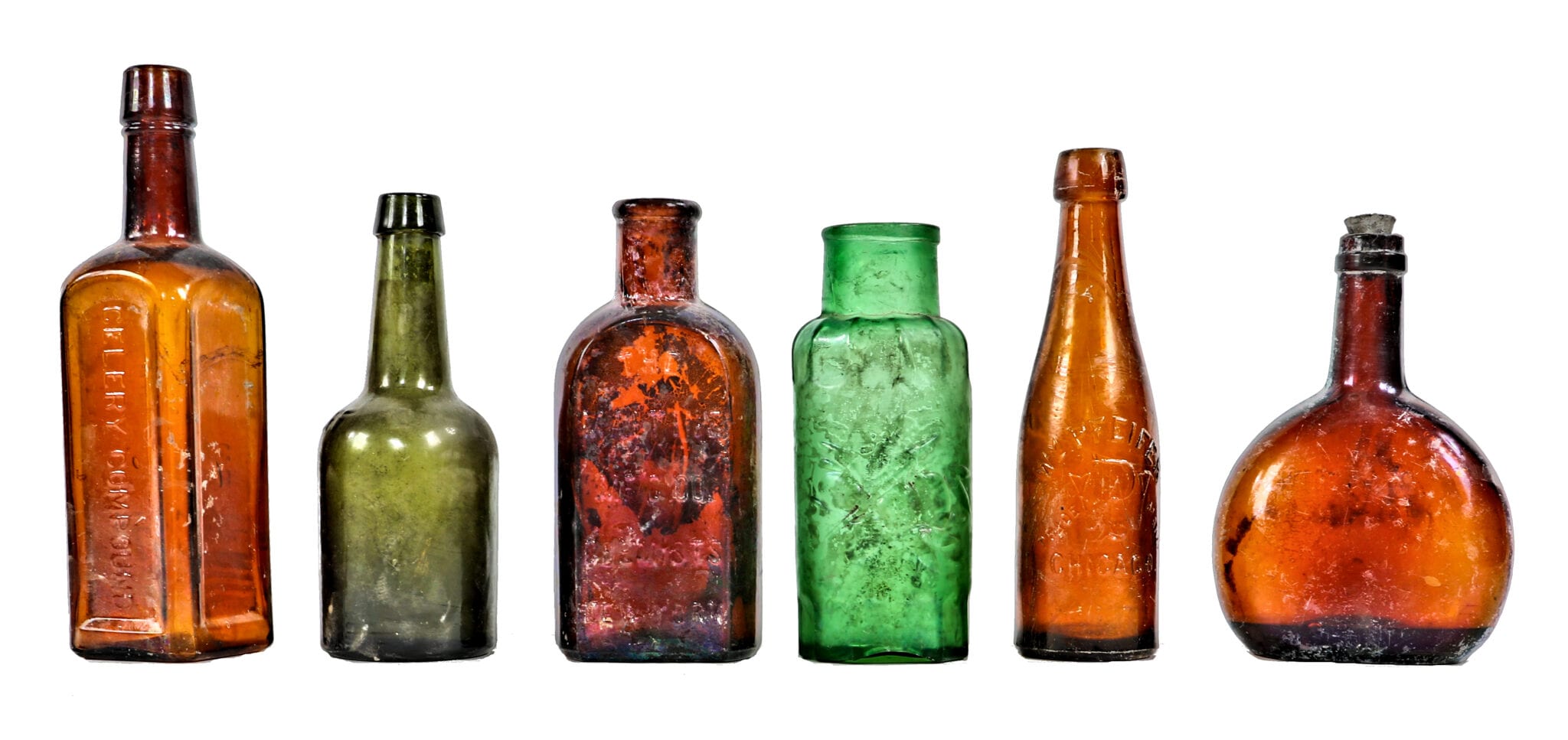 the small assortment of glass represent a cross-section of products commonly found in households across chicago, including, but not limited to: “medicinals” for a wide array of ailments, an unusual and heavily embossed “utility” or food jar likely used for storing capers or olives, and self-medicating concoctions in the form of beer and hard liquor (the latter was stored in the amber-colored flask with ring lip). additional bottles and/or identifiable fragments found at the site held contents used for polishing potbelly stoves, storing pepper sauces and pickles, and consuming carbonated soda and mineral water.