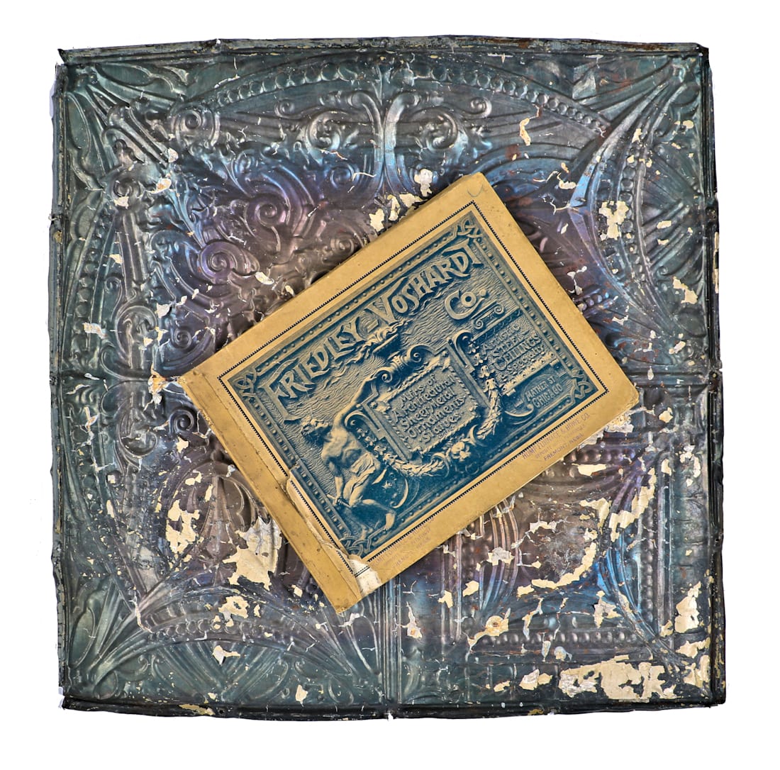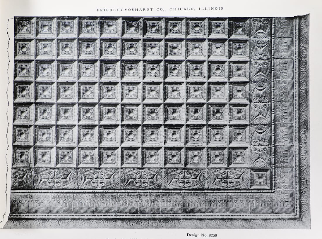 the tin ceiling tiles are perhaps less monumental, but serve to connect the dots in identifying the range and craftsmanship of an important chicago manufacturer of architectural elements. with the aid of a company catalog, aged metal can spark to life, as the product of a specific factory and knowable entities.