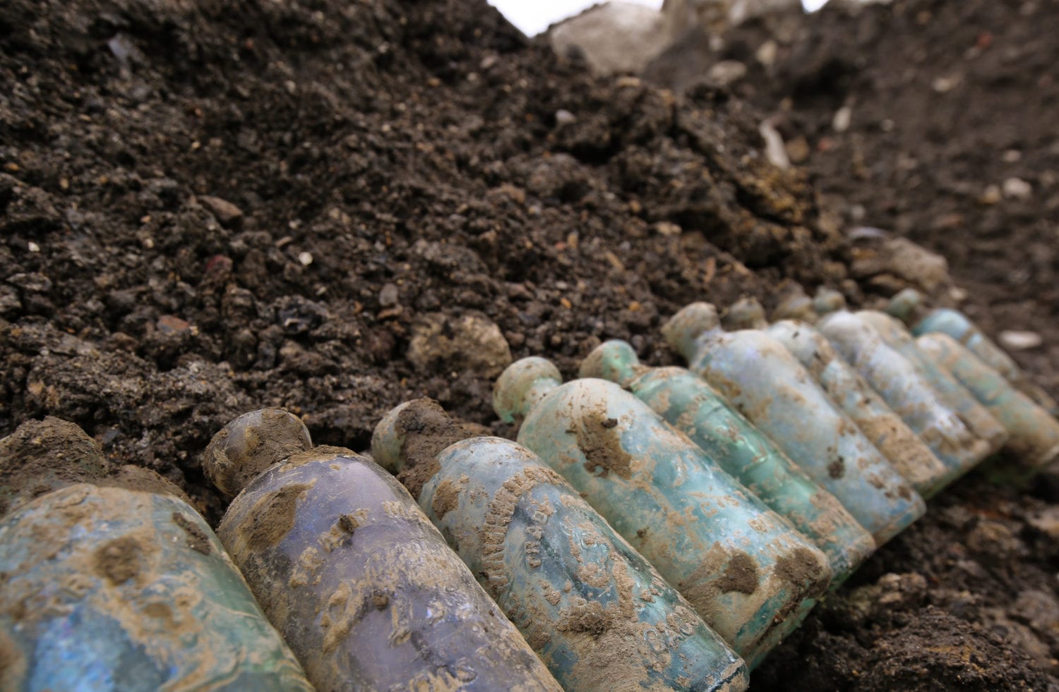 the following group of images were taken onsite, shortly after several clusters of bottles and fragments were unearthed, quickly sorted, and lightly cleaned for identification purposes.