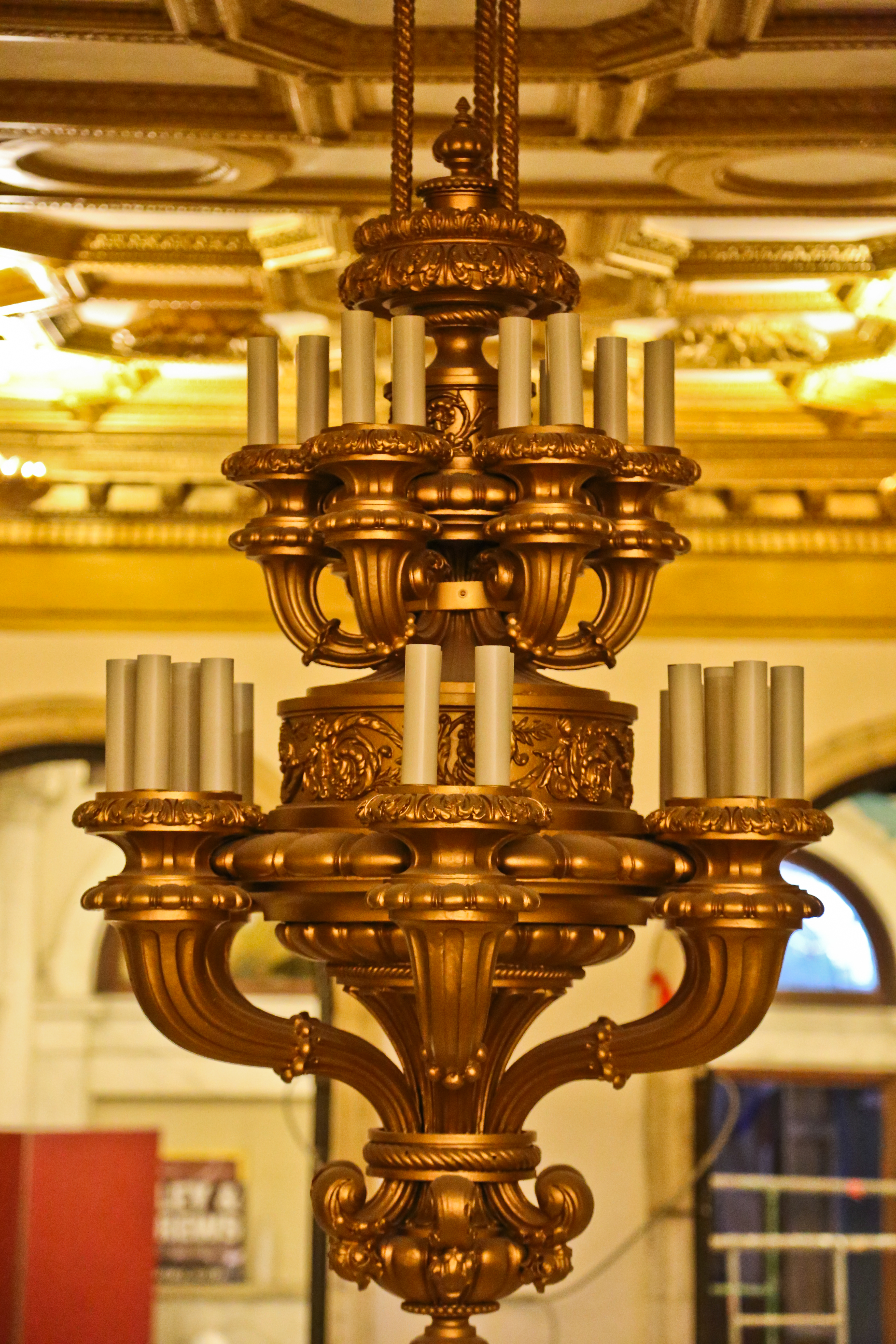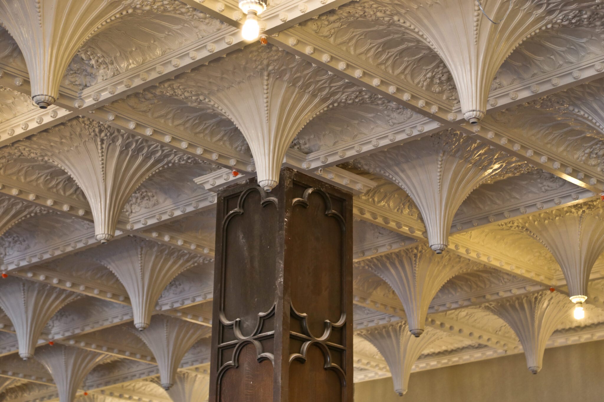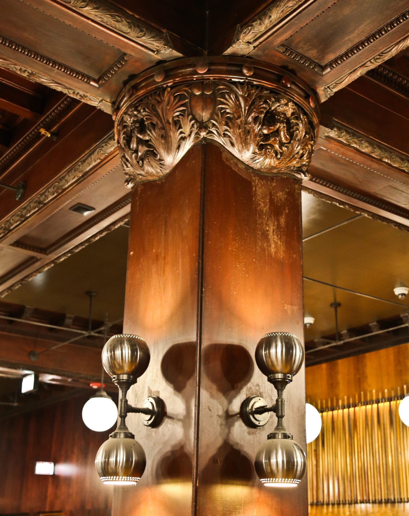 one of the highlights from documenting the lengthy transformation came when i discovered an early 20th century decorators’ supply company catalog that not only confirmed the fabricator of the chicago athletic club lobby’s main candelabra chandelier (along with wall sconces, coffered ceiling, and “bare bub” plaster pendants), but in addition, provided a full-page black and white photograph of the chandelier hanging in the newly remodeled lobby.