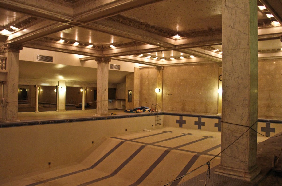 chicago athletic club pool room lobby restoration nearing completion. image courtesy of eric j. nordstrom/bldg. 51 museum archive.
