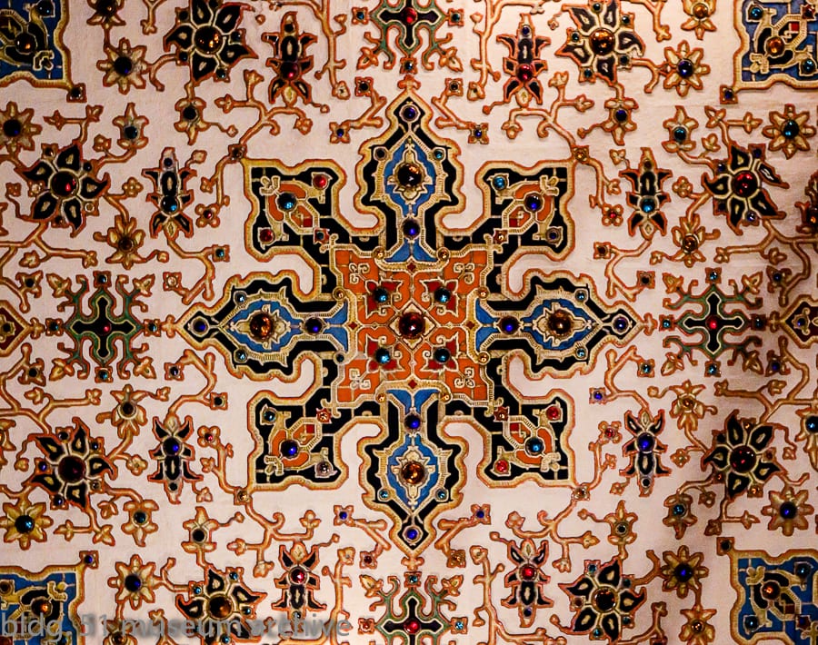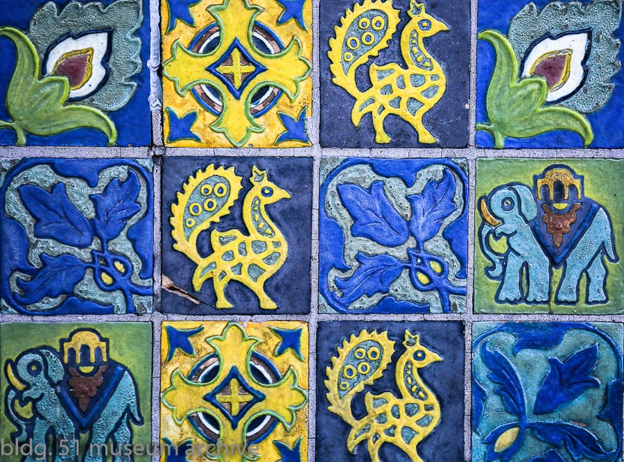 eberson pioneered this design style, and his plans for the avalon theater were said to have been inspired by a persian incense burner he found at an antique store. the lobby is bedecked with colored tiles underneath a flying carpet ceiling, set with gemstones that glistened as they moved, blown by the innovative air conditioning system. passing from the lobby to the enormous auditorium was like walking out of a palace and into an outdoor bazaar at night, with a tent over the stage and screen. more than 2,000 guests could gaze under a simulated night sky, complete with twinkling lights as stars. someone could completely forget their place in the world after a double feature in such a grand and unusual space. rather than seating the theatre patrons in a boxlike formal setting, as passive observers of stage entertainment, the atmospheric design transported them to an exotic european courtyard or garden.