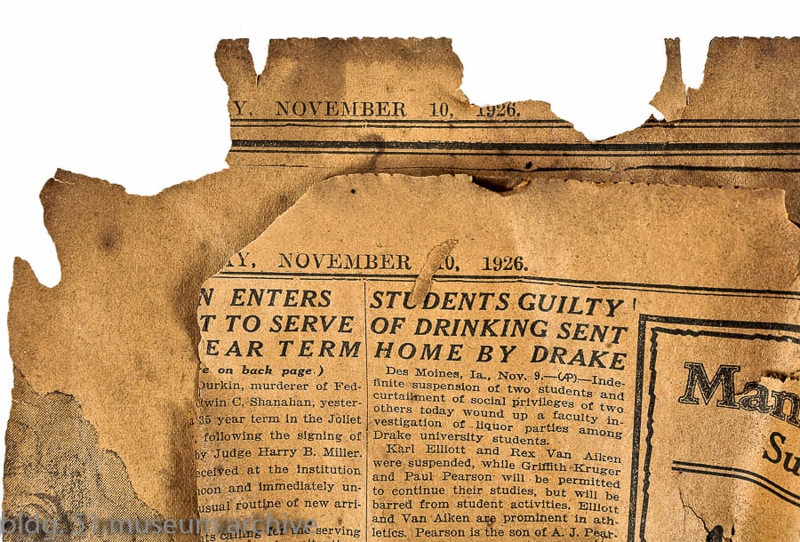 i began documenting john eberson’s atmospheric avalon theater (1927) early last week, and many additional visits lie on the horizon. aside from embarking on the creation of a visual record of the theater’s interior and exterior ornament, i managed to spend time in the attic. there i found several mazda light bulb boxes, piled high around the electric “stars” embedded in the ceiling. when i stumbled upon a few milk bottles and a complete newspaper – dated november 10th, 1926, i knew that all of this must have been left behind by a tradesmen (as the theater’s interior was under construction for its grand opening on august 29th, 1927).