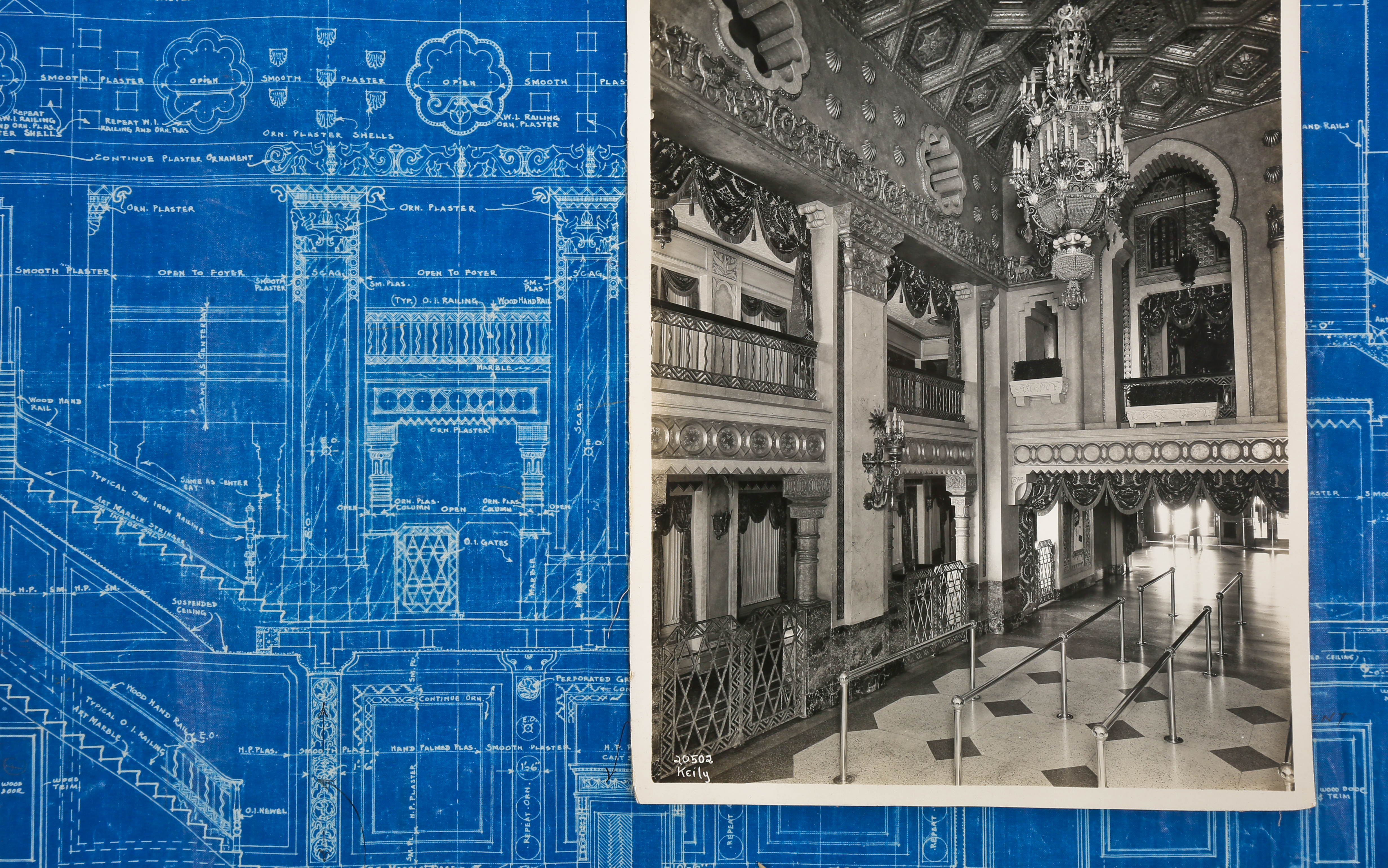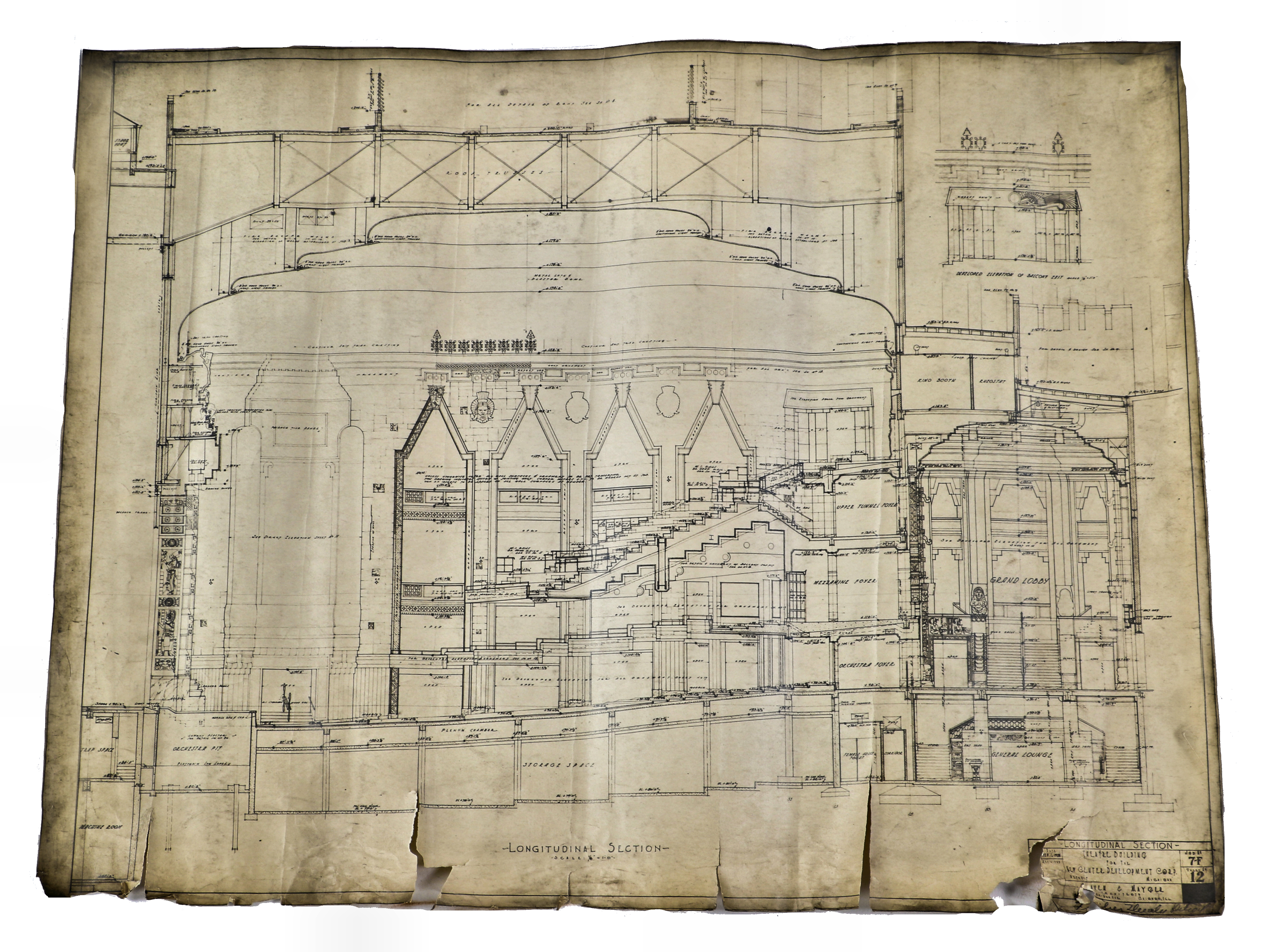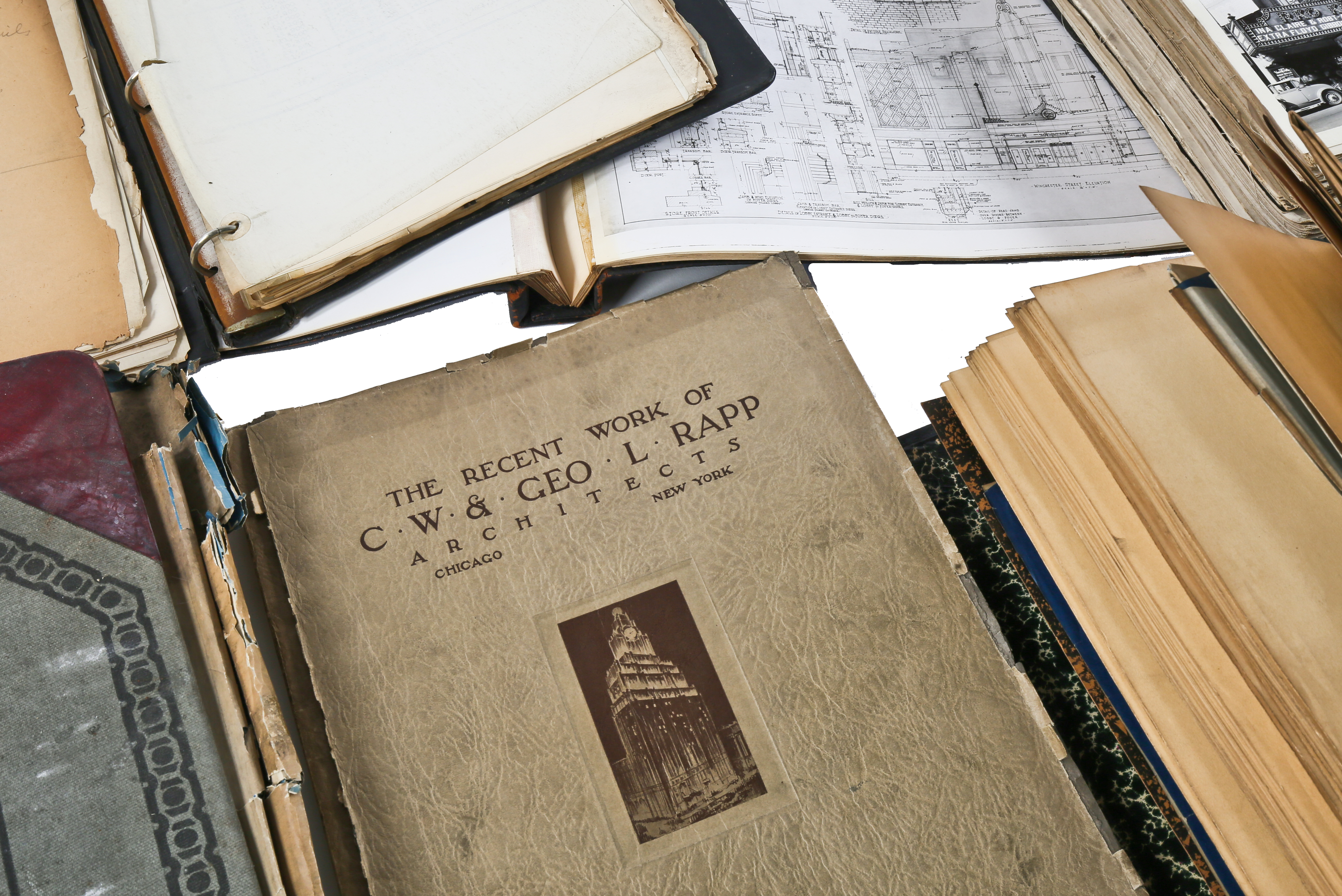 the bldg. 51 museum recently secured another important archive, containing previously undocumented materials belonging to the short-lived notable chicago-based architectural firm of graven and mayger. the drawings, ledgers, blueprints, photographs, and paperwork last belonged to edward rupinksi, who worked as a draftsman for the firm. a portion of the archive contains material from the prestigious firm of rapp and rapp, which was likely obtained during the time both anker graven and arthur mayger spent working for them. the expense sheets and contracts tied to rapp and rapp’s uptown and tivoli theaters are especially of interest. the core of the graven and mayger archive revolves around a gargantuan binder, acting as a portfolio for hundreds of silver-gelatin photographic prints. this includes most, if not all of their commissions; especially noteworthy are the extensive interior shots of several movie palaces shortly after their completion. the firm of graven and mayger split up in 1930, after the completion of a number of architecturally important theaters and buildings. from then on, the firm continued as a.s. graven, inc. architects and completed a number of subsequent commissions for paramount pictures. after graven’s passing in 1932, rupinski was left in charge of the firm’s records, and they remained in his possession until his death in 1961. discovered over fifty years later in his former residence here in chicago, little of this collection has ever been viewed by even the most prestigious architectural historians, let alone the general populace. all of the material is currently being digitized, after which it will be made available in the archive section of the bldg. 51 museum website.