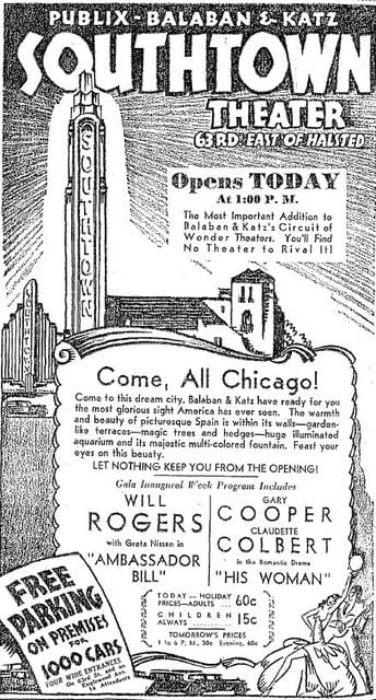 the spanish revival style southtown theater (demolished) was designed and built for balaban and katz by the notable chicago-based architectural firm of rapp and rapp (chicago, uptown, etc.) in 1931. located on the south side of chicago, the southtown was one of the last major movie palaces ever built in chicago. the stucco-covered theater’s most distinctive exterior feature was its massive tower, which was more than 90 feet tall with brightly lit oversized neon letters containing the word “southtotwn” adorning all four sides.