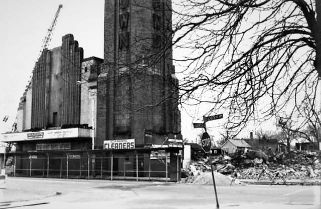 the cavernous auditorium housed 2,200 seats on the main floor and an additional 1000 seats in the upper balcony. the theater’s grand lobby was originally outfitted with a flamingo pool and fountain featuring a running waterfall and live fish. dioramas located on the mezzanine floor, featured notable city of chicago historical events (e.g., the great chicago fire of 1871). the theater was equipped with a twin box office, children’s recreational rooms and, smoking lounges for men and women. the southtown was converted into a department store for carr’s, shortly after it closed in 1958. the theater succumbed to the wrecking ball in 1991.