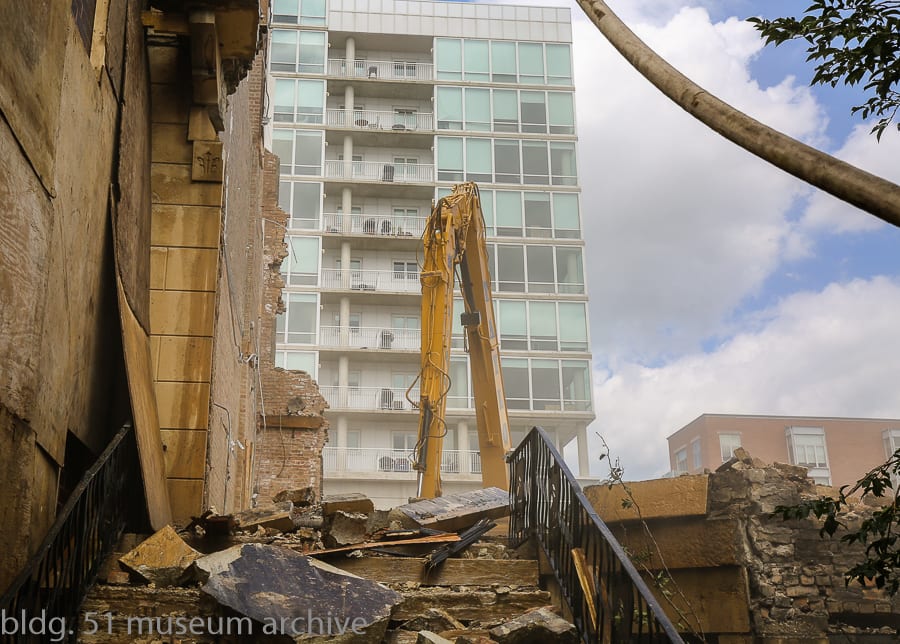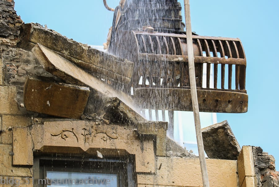 instead i found myself, along with others, spending two consecutive afternoons documenting the deaths of these buildings, to have a thorough visual record of their characteristics, including condition, design and/or ornament, configuration, and so on. thankfully, both the developers and the wreckers agreed to save key architectural elements (e.g., lightly incised window hoods and door headers featuring abstract floral motifs popular during that time period) based on negotiations by neighborhood advocate moshe tamssot. the homes are now long gone, but will live on in both photographic images and fragments collected those afternoons.