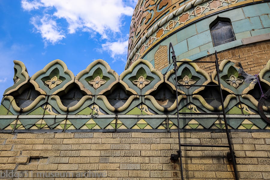 during my second visit to chicago’s atmospheric avalon theater, i spent the first few hours documenting any and all of the exterior terra cotta, primarily from the rooftop. the images below provide the viewer with the multitude of design motifs employed by eberson, along the polychromatic glazed finish (the terra cotta was executed by the american terra cotta company, chicago, ills.