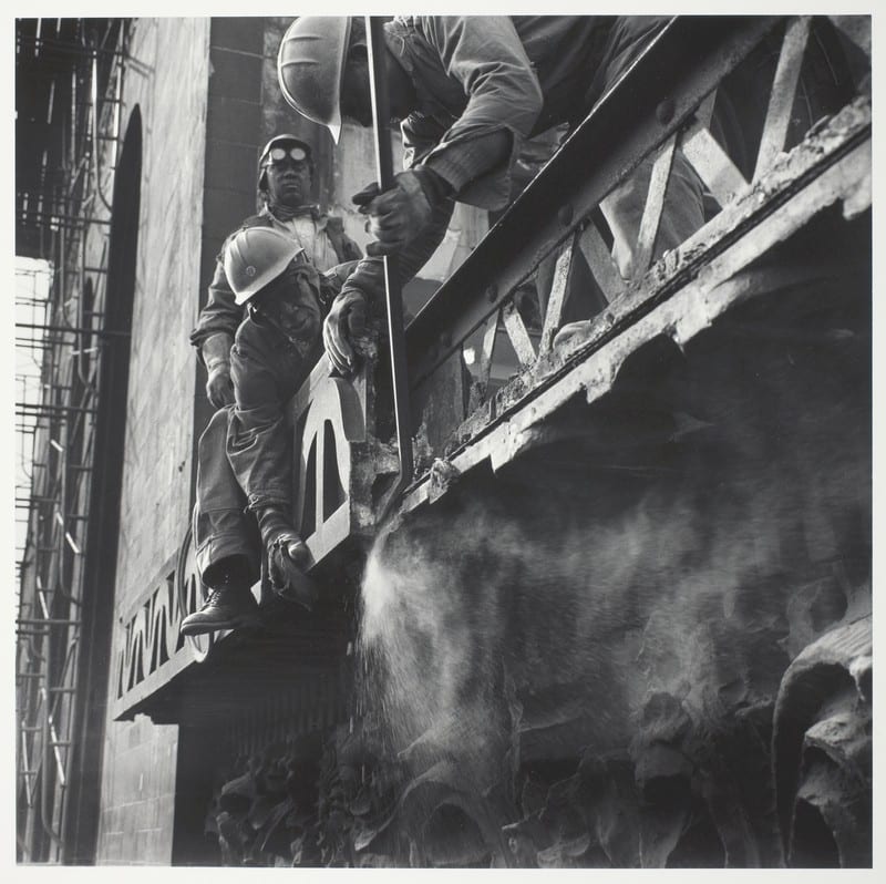 a friend invited me over to a warehouse where crates of terra cotta from the garrick theater, scoville factory, and rosenfeld flats have been in storage for several years. when i arrived, all of of the ornament was on display on the floor, arranged as partially complete building facade jigsaw puzzles. it reminded me of images i’d seen of the another, much larger garrick theater graveyard laid out at navy pier – a space offered by the city of chicago as temporary storage for any and all ornament as it was being stripped off the building during its demolition in 1960. while much of the ornament was distributed to institutions and museums, a sizable amount was pushed into lake michigan.