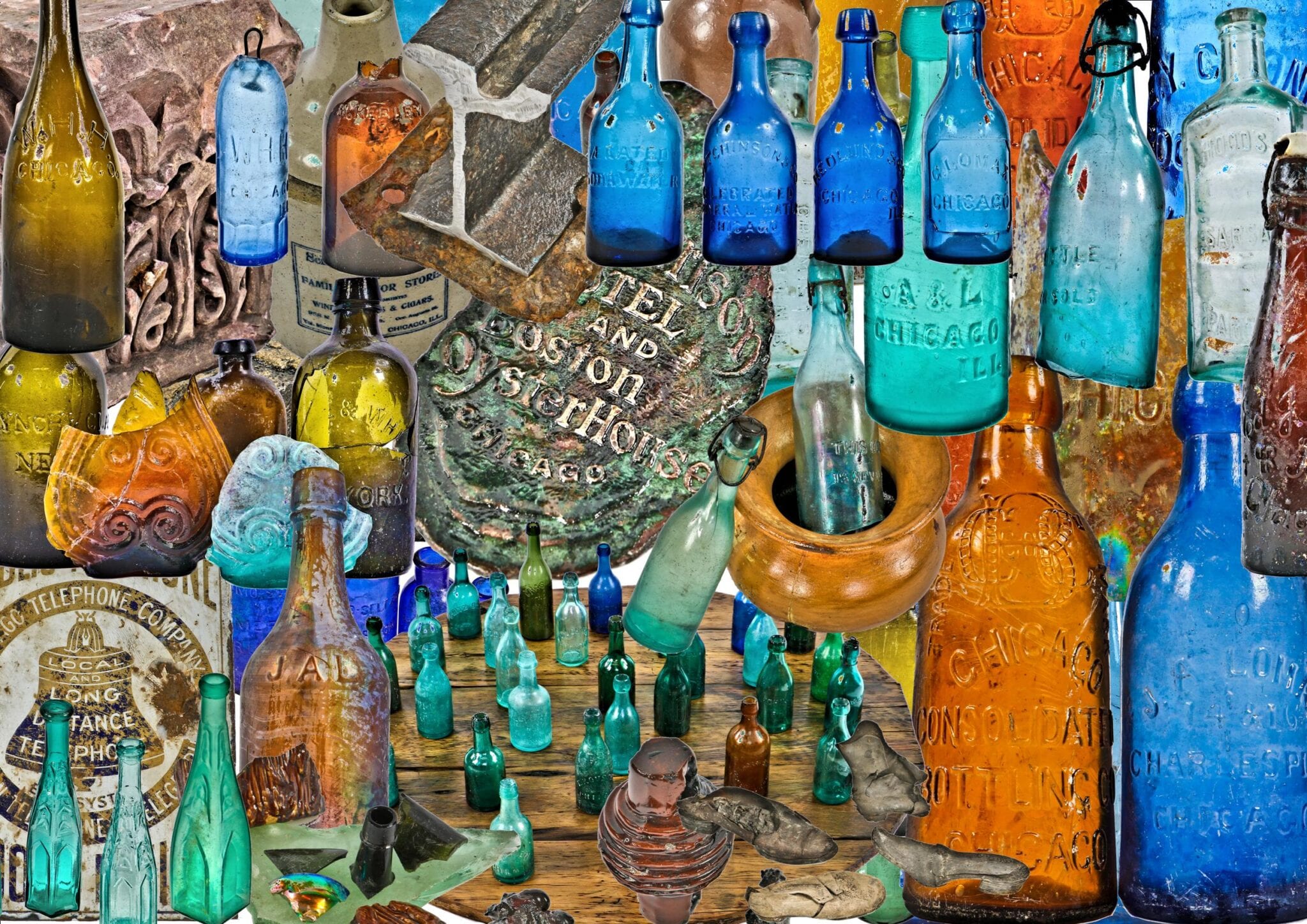 in addition to creating a photographic database of these historically important objects from chicago’s past, i will be adding several images of the actual sites where many of these portals are found. the images capturing a soda bottle or partially intact shoe “in situ” are especially important, since they offer a true and undisturbed look at objects as they were left long ago. the upcoming publication of “unearthing chicago” will bridge this “field” photography with objects extracted and lightly cleaned or restored and photographed in the studio, along with all of my research and narratives assigned to the dig sites and objects themselves.