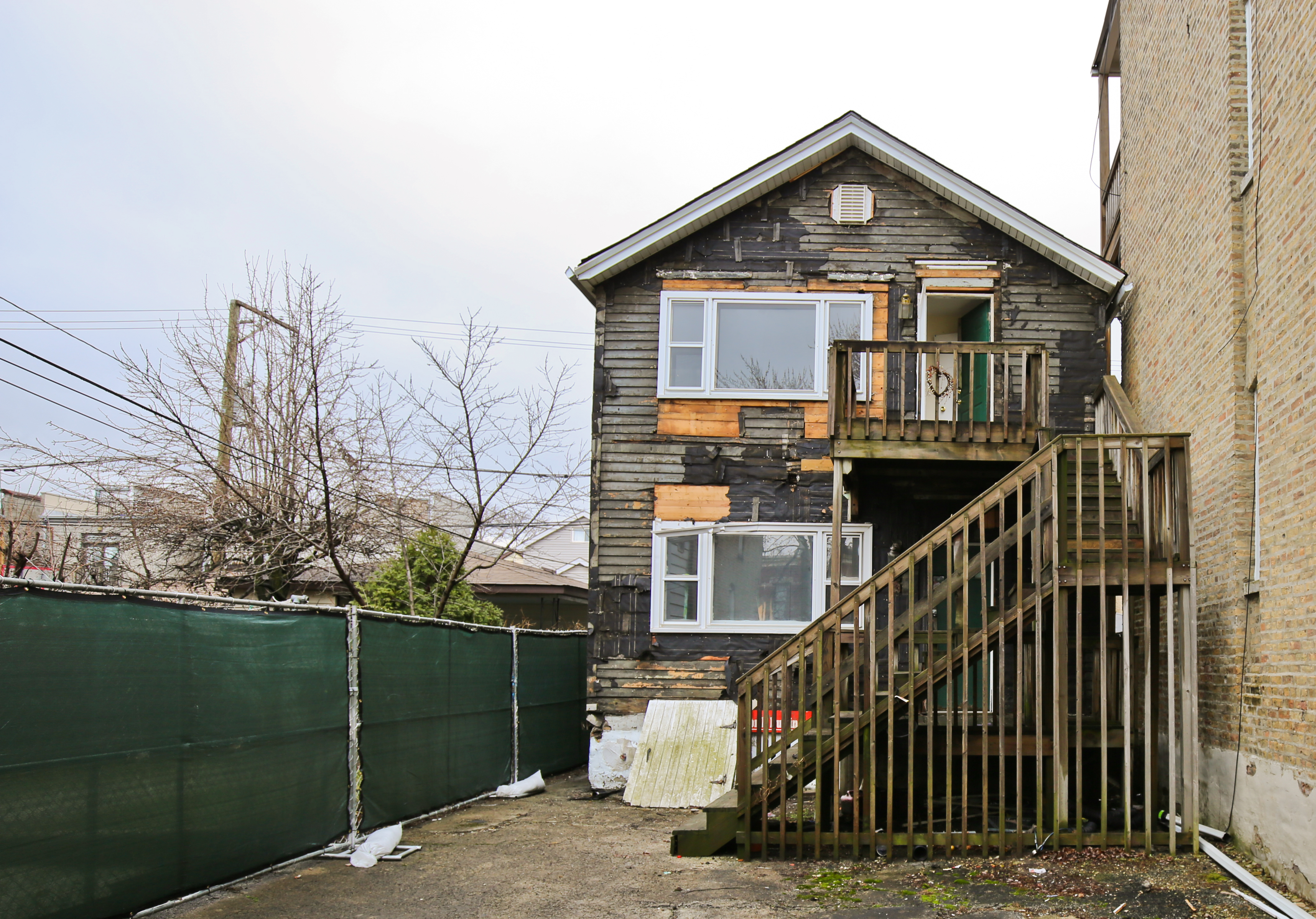 stripped down to an early pine wood clapboard – likely added during the late 19th century – the modest two-story wood frame cottage awaits its demise. the chicago workers cottage was moved around some, with the last being at the rear of this lot, to accommodate the inclusion of a 1900’s-era structure that came and went. cottages or “coach houses” located at the rear of a given lot is rather common, where they were moved when a newer building was erected at the front. based on all available data, the cottage was erected during the 1860’s.