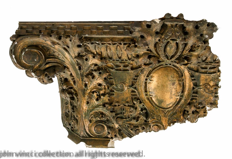 vinci is a unique scholar and architect, having studied at the illinois institute of technology (iit) in the 1960’s, where he took to salvaging endangered ornament alongside richard nickel and his peers. they shared a common concern for the architecture of adler & sullivan, and gathered a great body of knowledge from being out in the field. in a 2002 interview archived by the art institute, vinci answers to his vision for collecting, and responds to the idea of salvaging for souvenirs: “…alfred caldwell wrote papers on sullivan and the ornament. he wrote a famous essay called ‘the hex of harmony,’ saying that the ornament was supernatural … it was, in a sense, a diagram of nature juxtaposed to architecture. so we saw it as sacred material, never as souvenirs. we just thought you had to save it so then we became avid savers.” he goes on to credit richard nickel’s foresight, saying “…nickel of course was saving way ahead of us—he paid wreckers. he was broke, but he managed to get fifteen or twenty dollars and have things sawn and cut out of buildings. i was taking little things. i never took anything big.” together, vinci, nickel and samuelson were among the most important figures to do this pioneering work; all had collecting practices driven by a deep and urgent ambition to save history rather than to amass valuables.